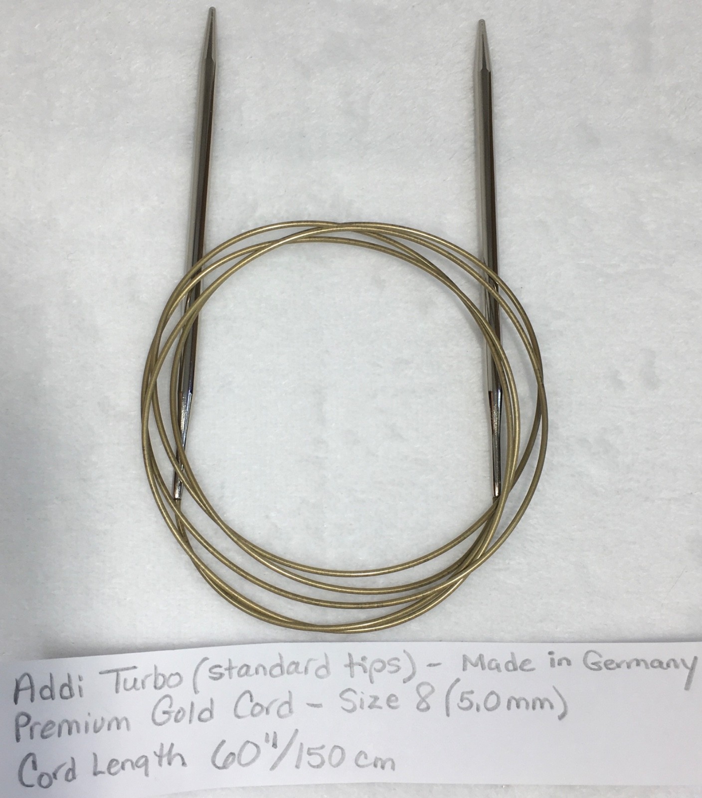 Addi Turbo Circular Knitting Needles US 8 5mm - 60 150cm Premium Gold Cord