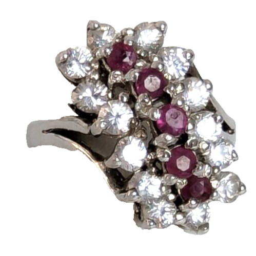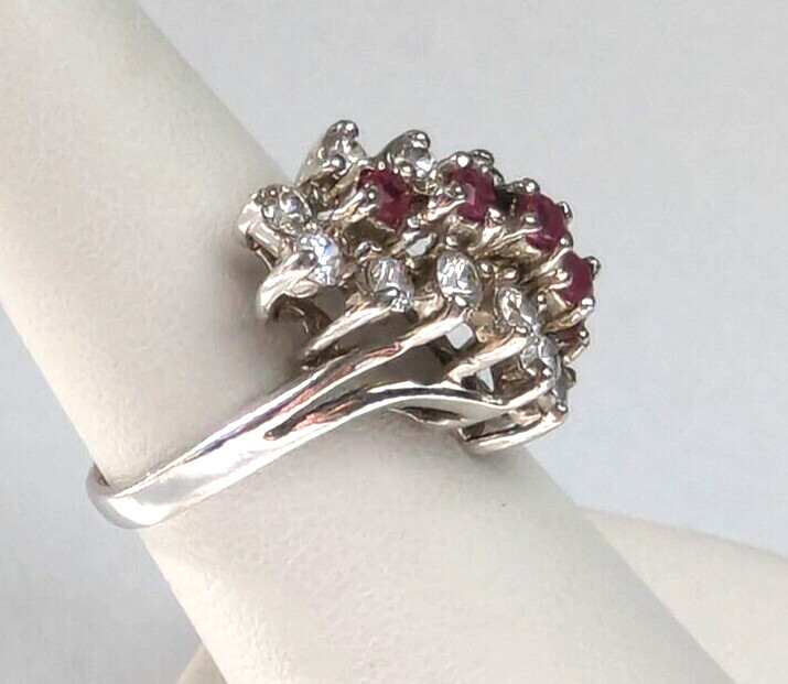 Sterling Silver Real Ruby CZ Stones Cocktail Ring Size 7 925 Silver