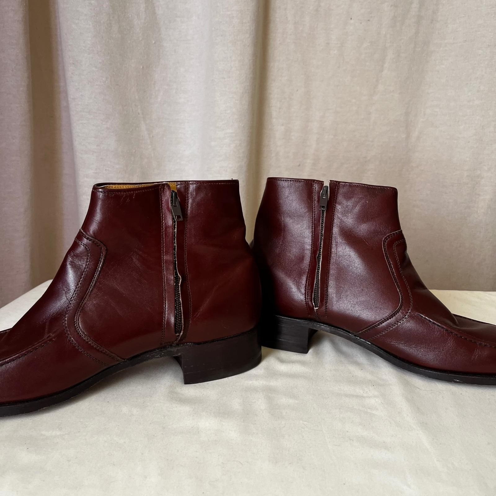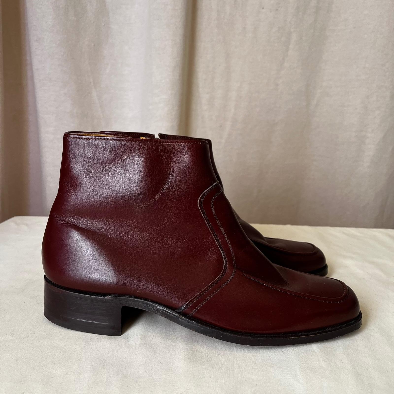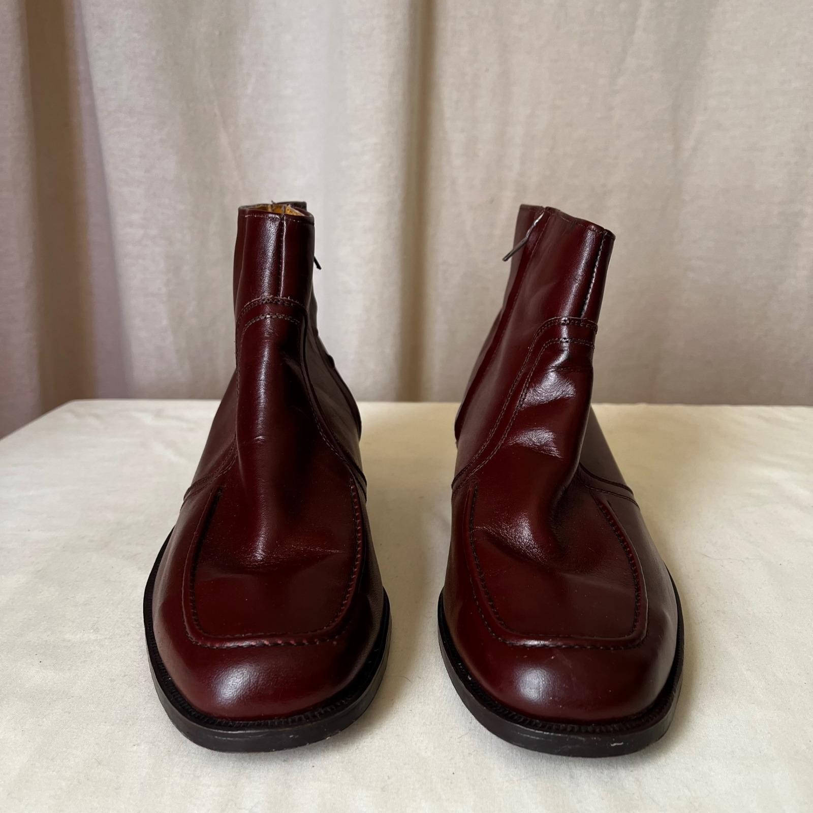 как выглядит Vintage Walk-Over Vel-Flex Burgundy Leather Ankle Boots Mens 10.5 D фото