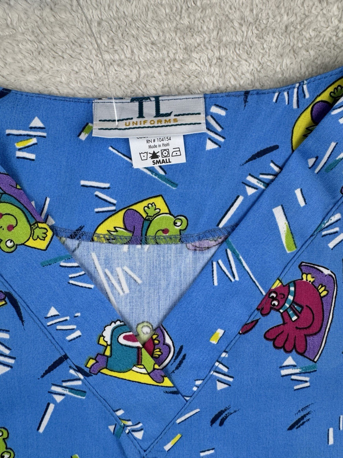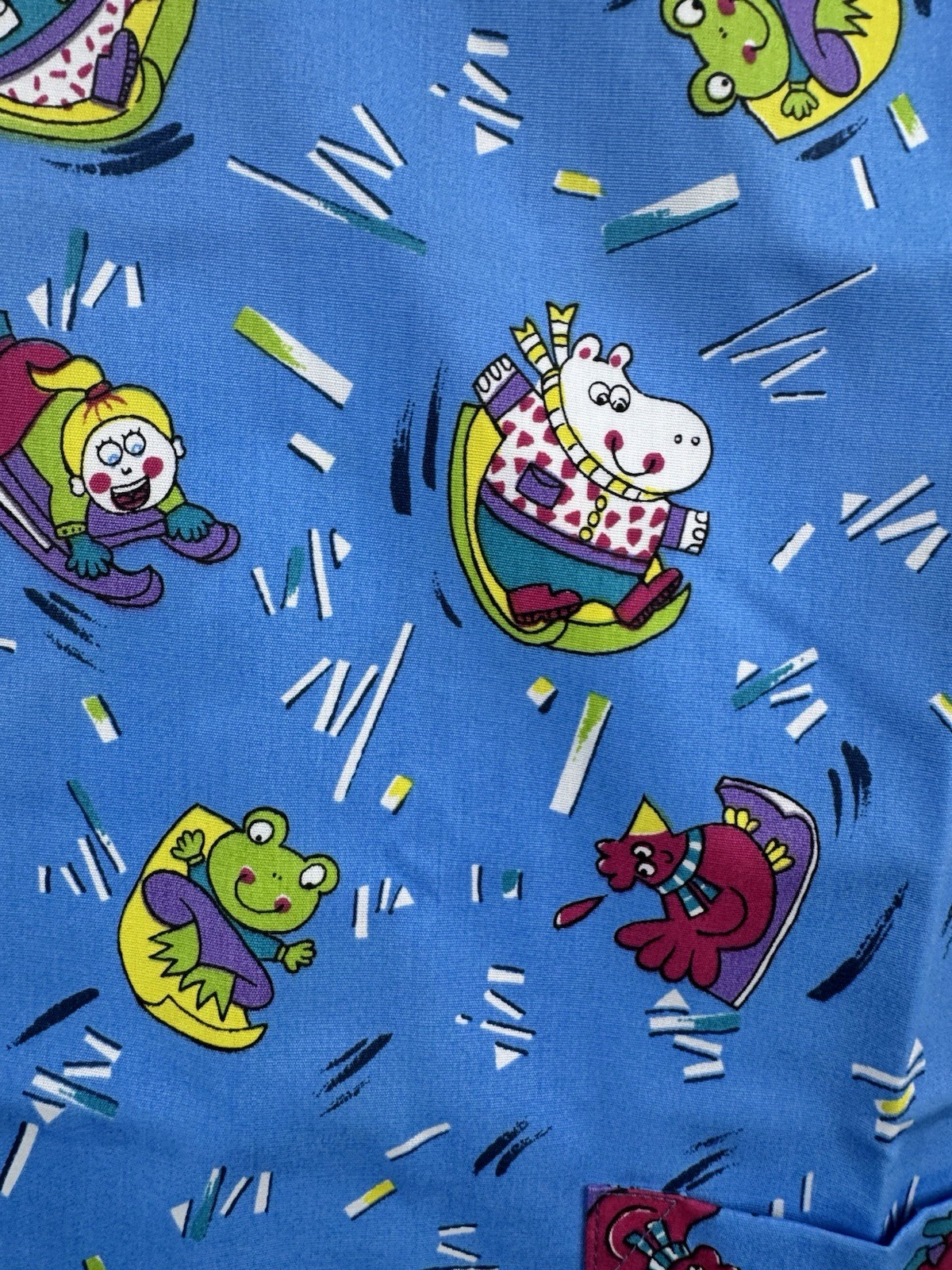 TL Uniforms Women s V Neck Scrub Top Size Small Blue With Animals Snow Skiing
