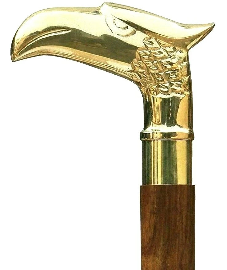 VICTORIAN STYLE SOLID BRASS HANDLE WOODEN WALKING STICK/CANE VINTAGE GIFT SOLID