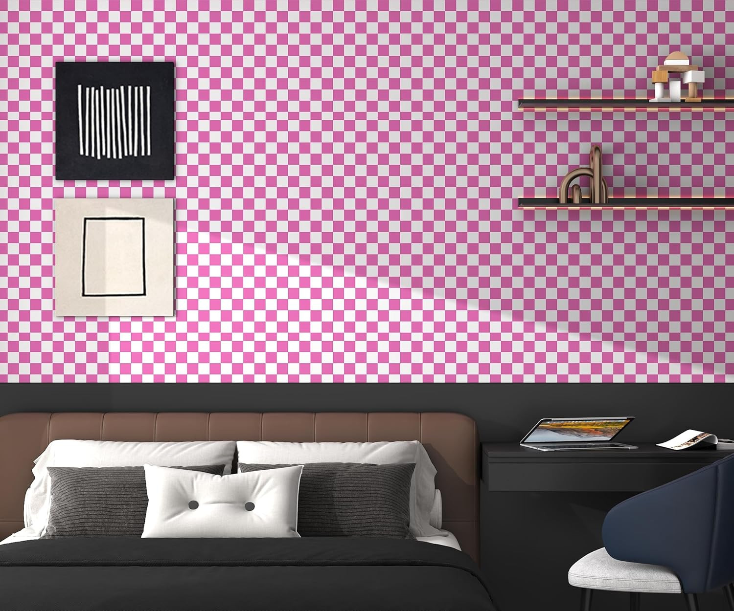 как выглядит Modern Peel and Stick Wallpaper Pink and White Mosaic Checkered Contact Paper 17 фото
