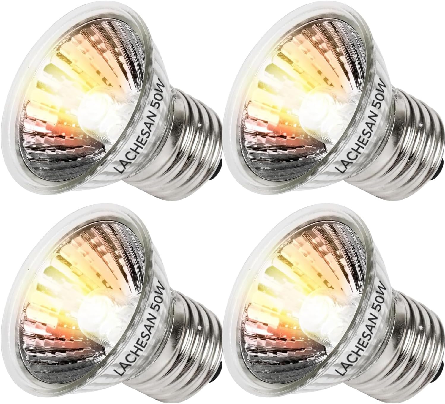 4-Pack 50W UVA Bulbs, Fit E26 Heat Reptile Lamp, Light Turtle Heat Lamp for Rept