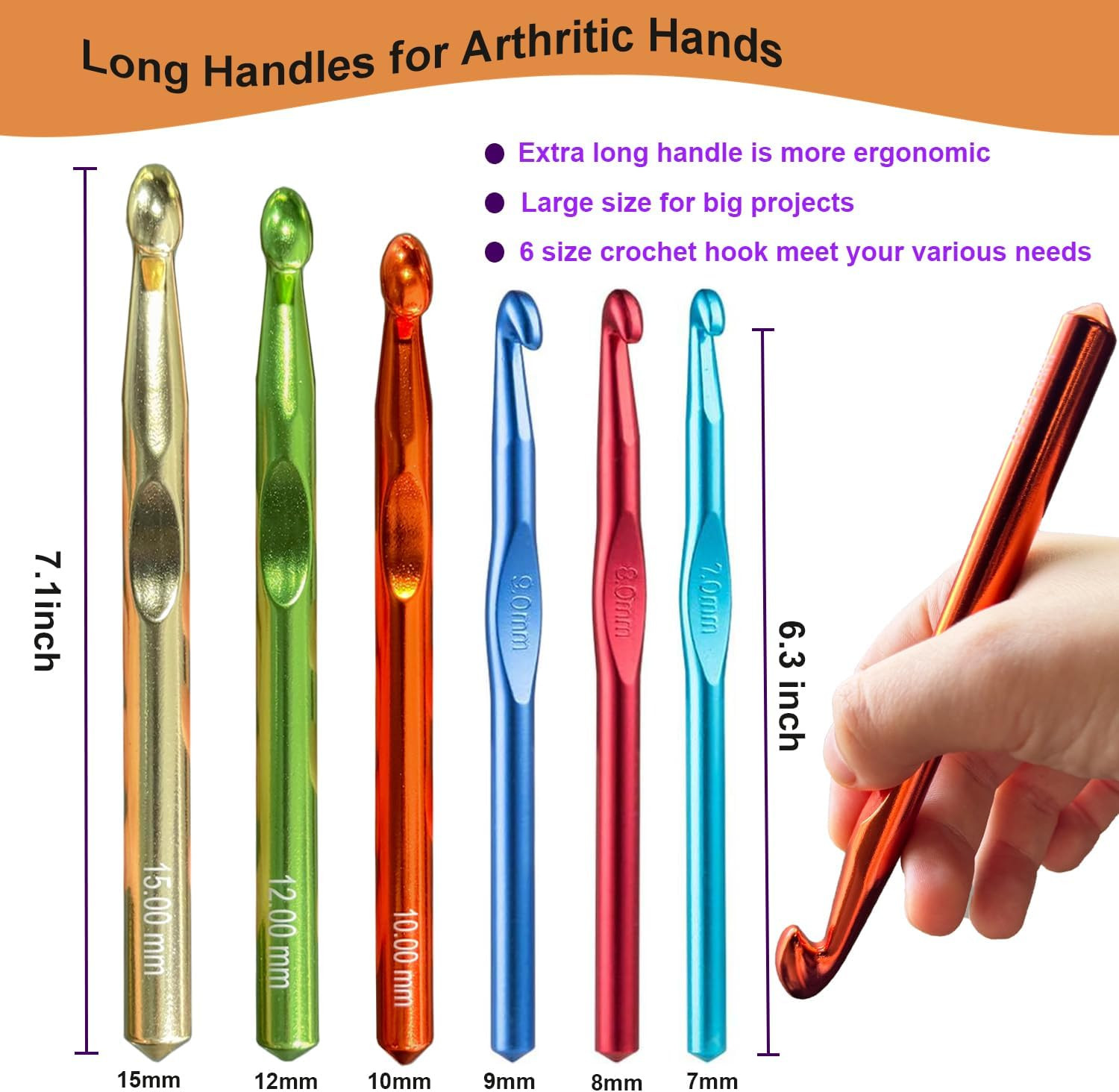 21pcs Huge Crochet Hook Set,Large Size 15mm 12mm 10mm 9mm 8mm 7mm Aluminum