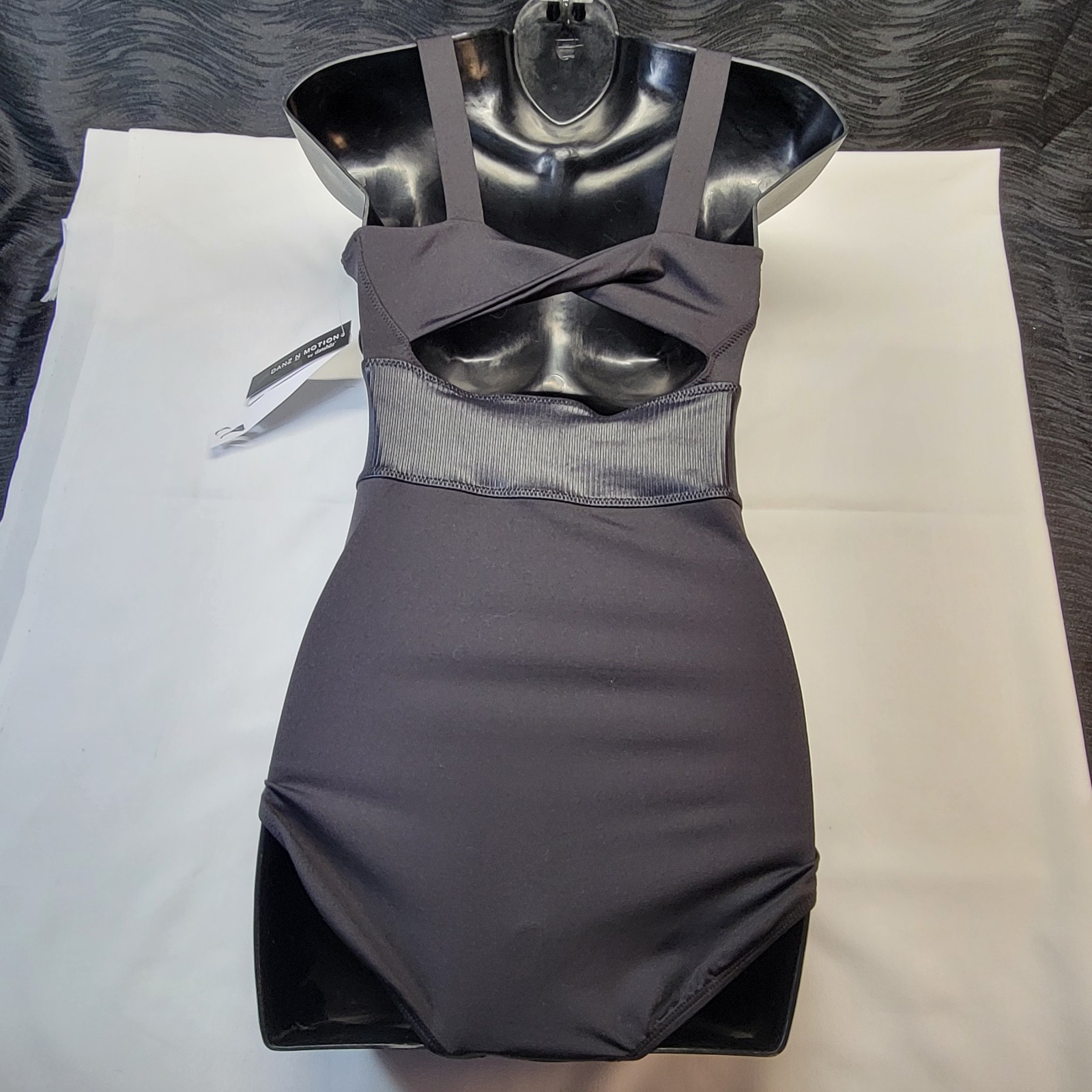 как выглядит Danz N Motion Leotard Black Pinch Front Textured Insets Cross-over Back SZ XL-A фото