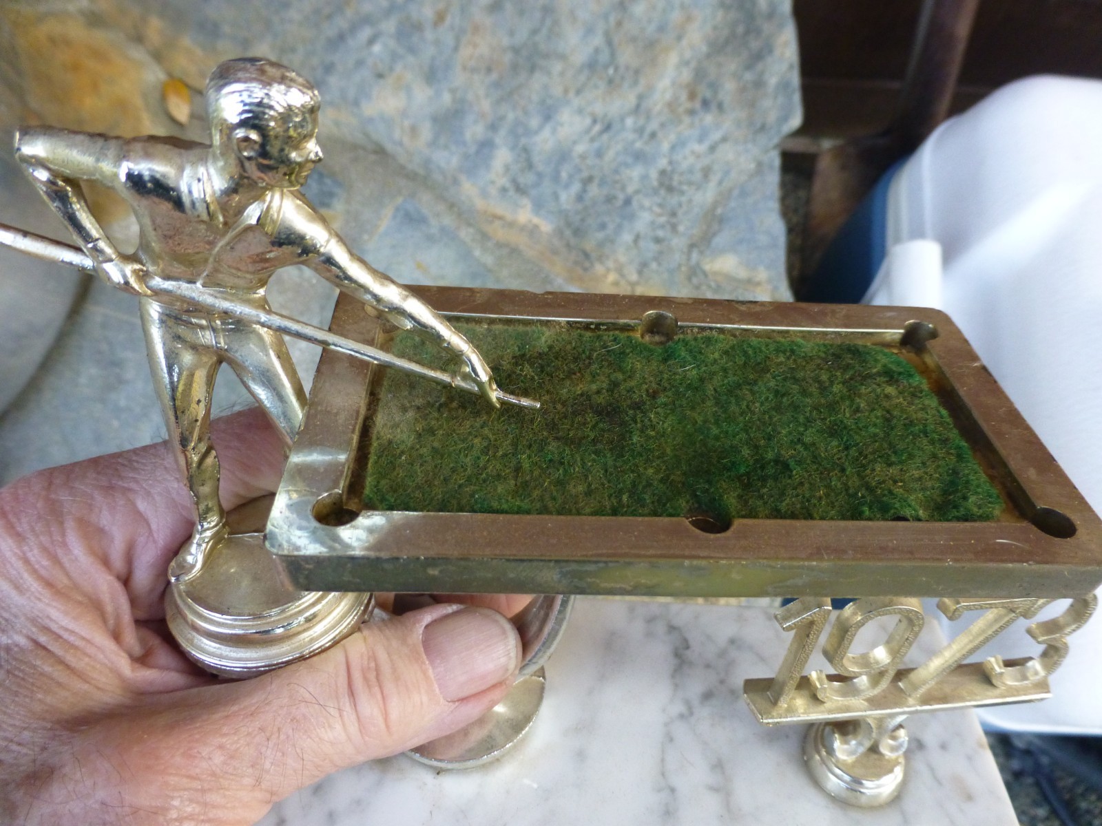 как выглядит vintage 1973 Hiphugger BILLIARDS POOL table TROPHY marble base фото