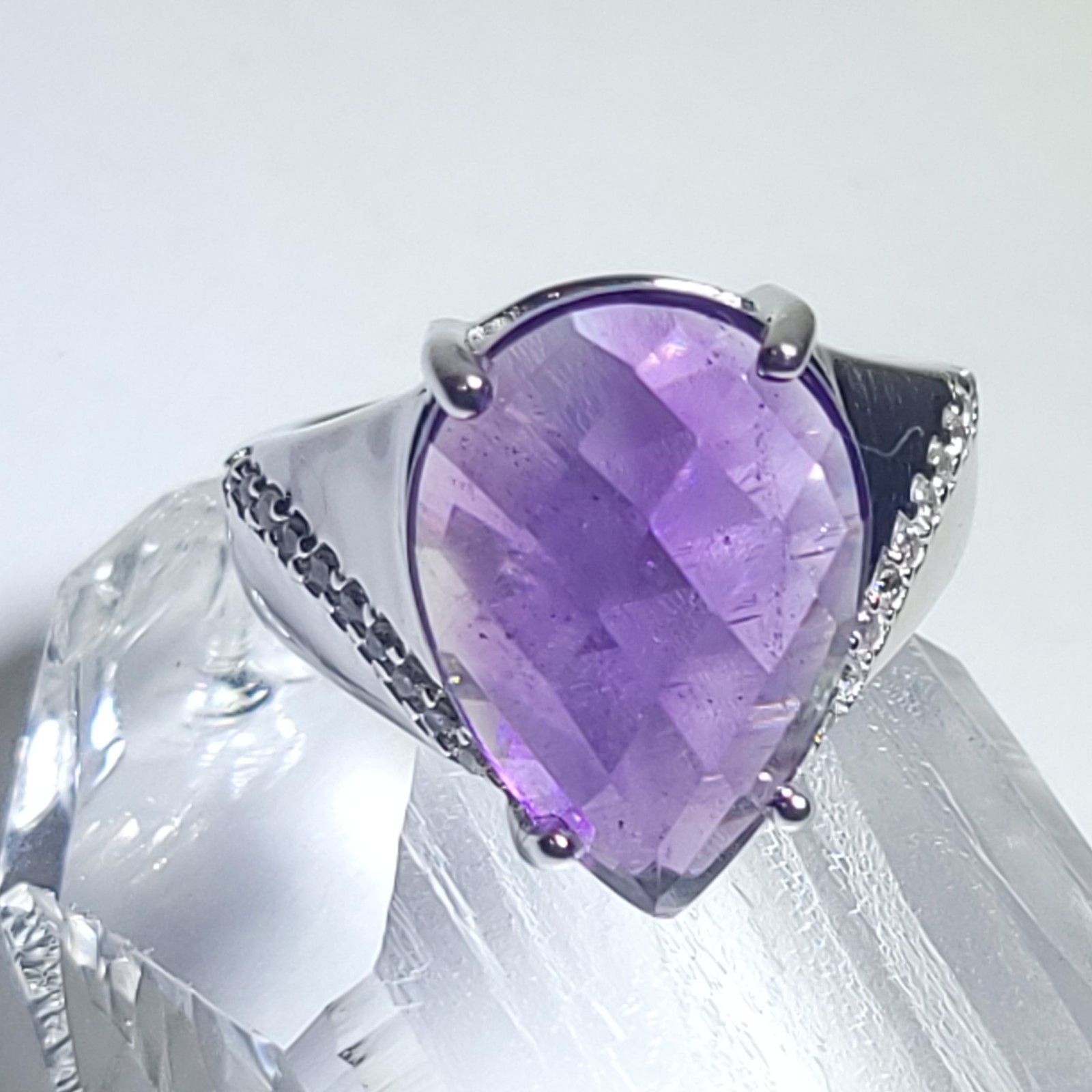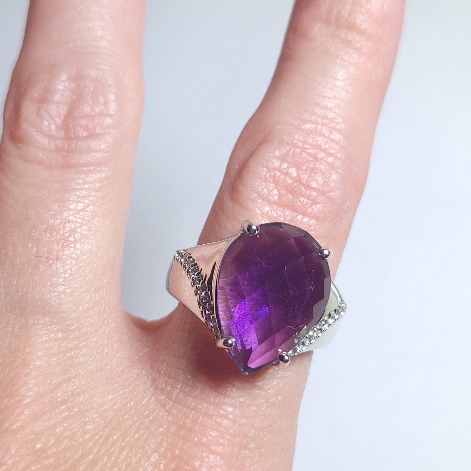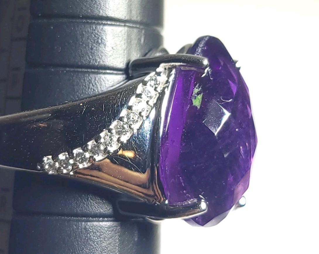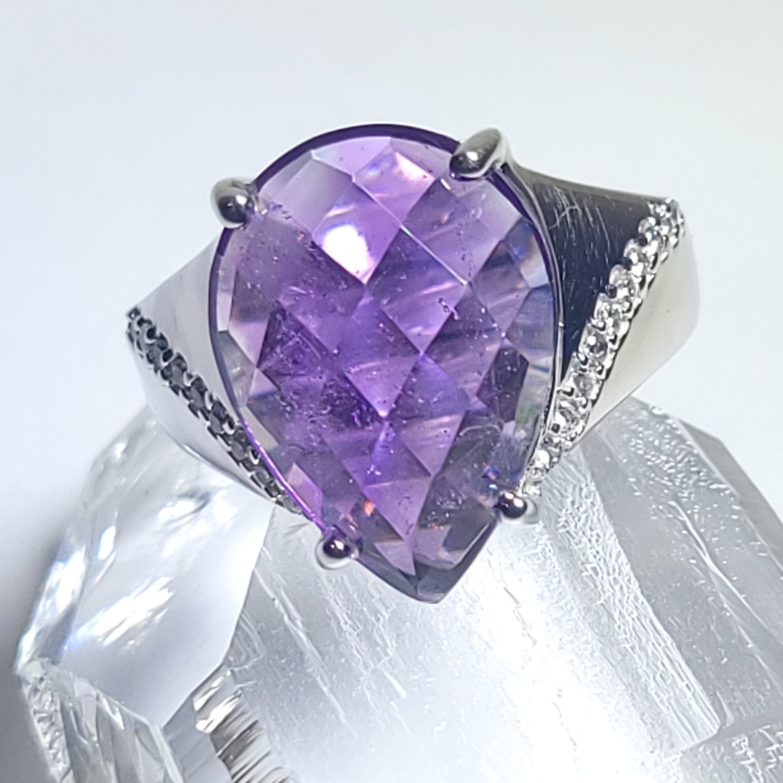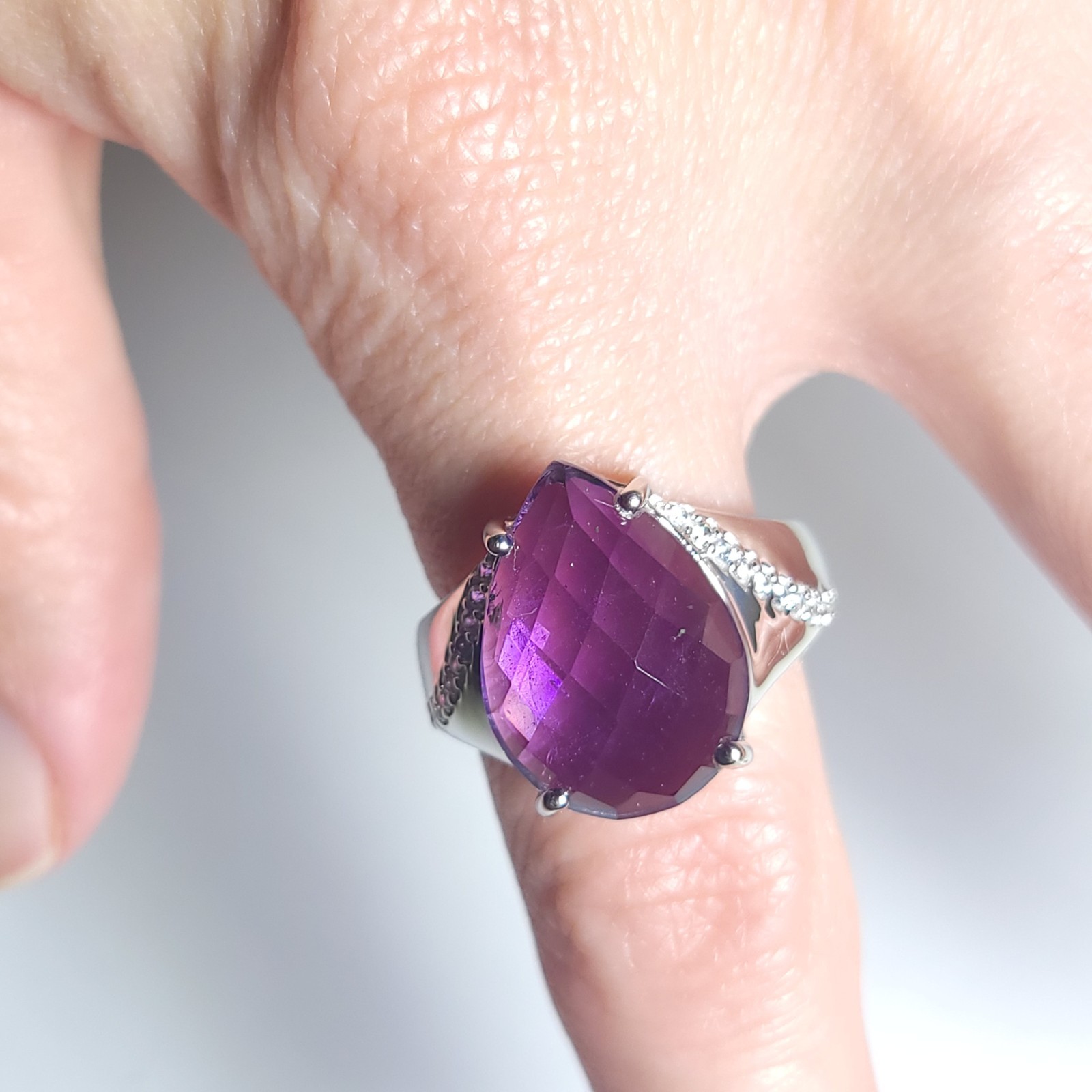 как выглядит Vintage Amethyst Sterling Silver Ring Faceted Pear Purple Size 8 RGN 925 Prong фото