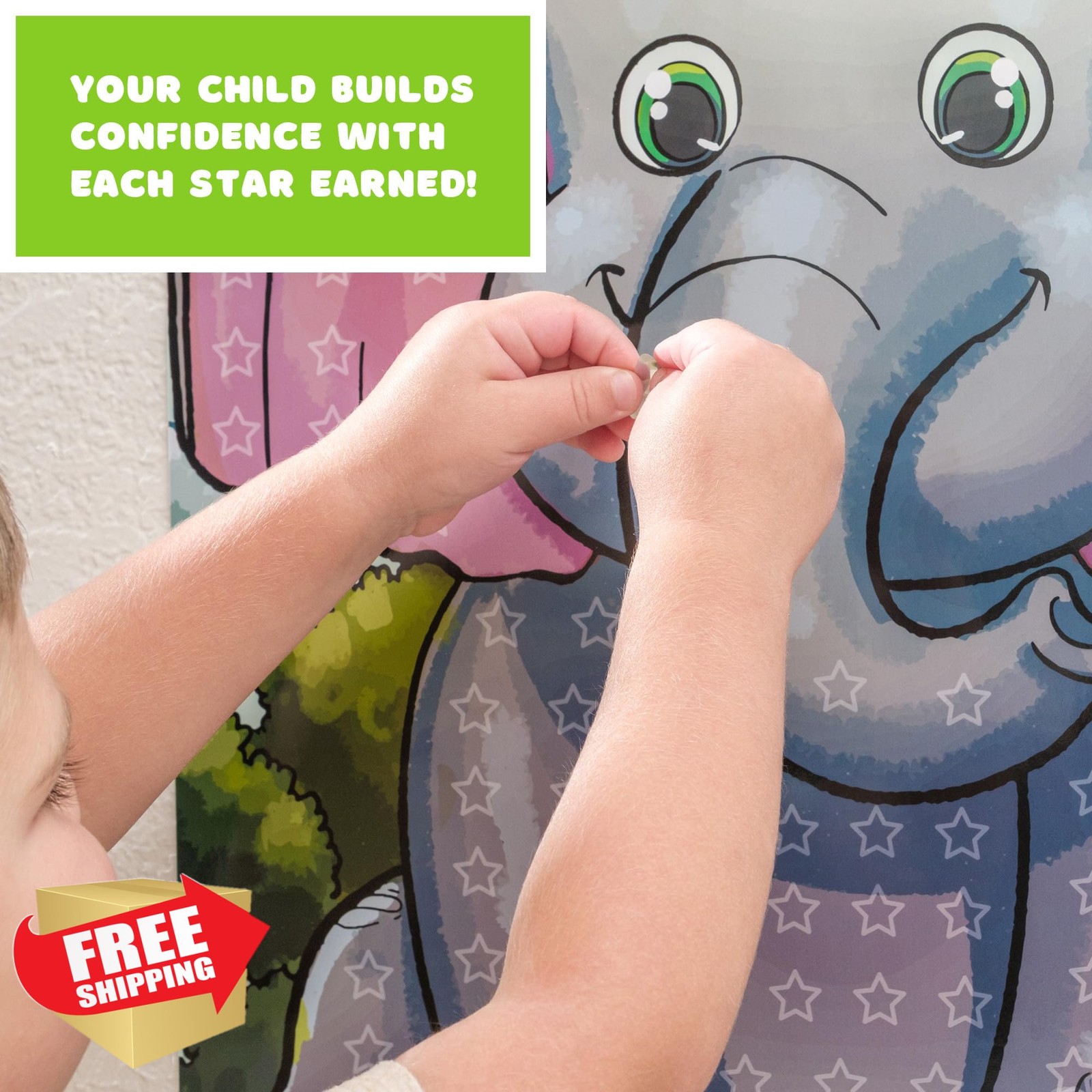 Elephant potty training sticker chart, large toddler poster, 100 stars