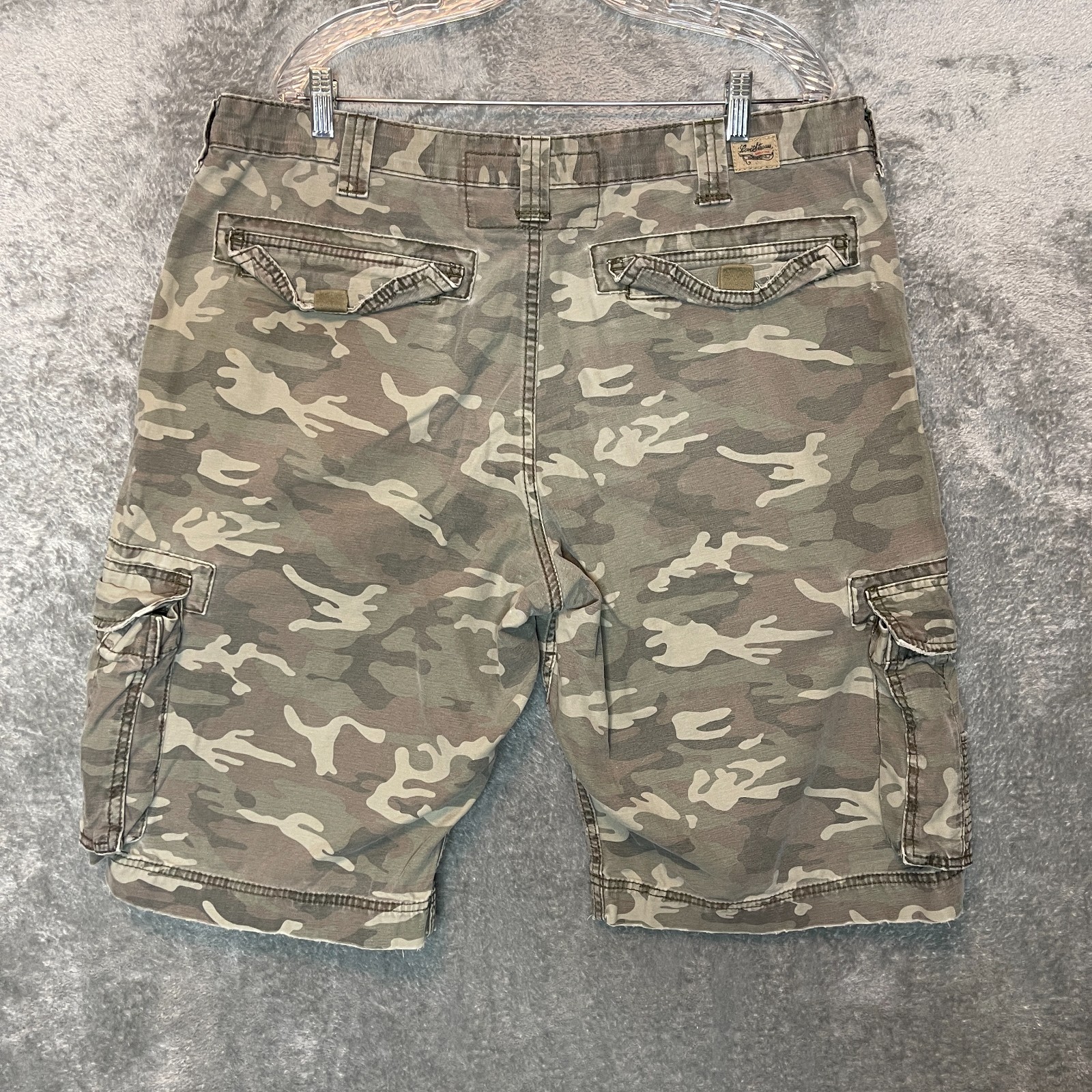 Vintage Levis Men Y2K Paratrooper Distressed Baggy Loose Camo Cargo Shorts 38