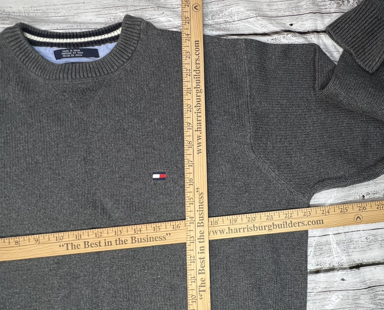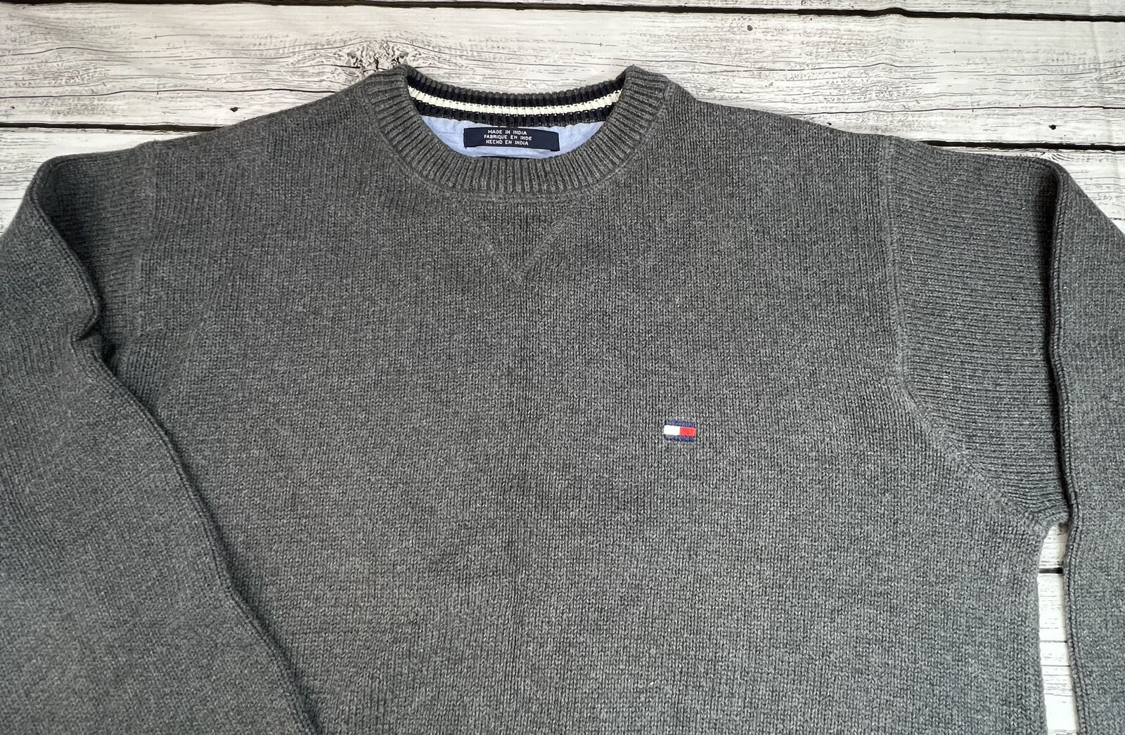 как выглядит Vintage Tommy Hilfiger Dark Gray Mens Large L Long Sleeve Heavyweight Sweater фото