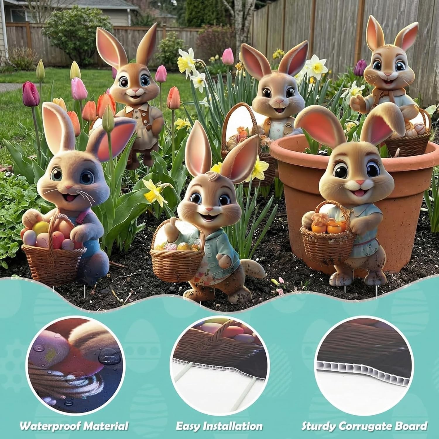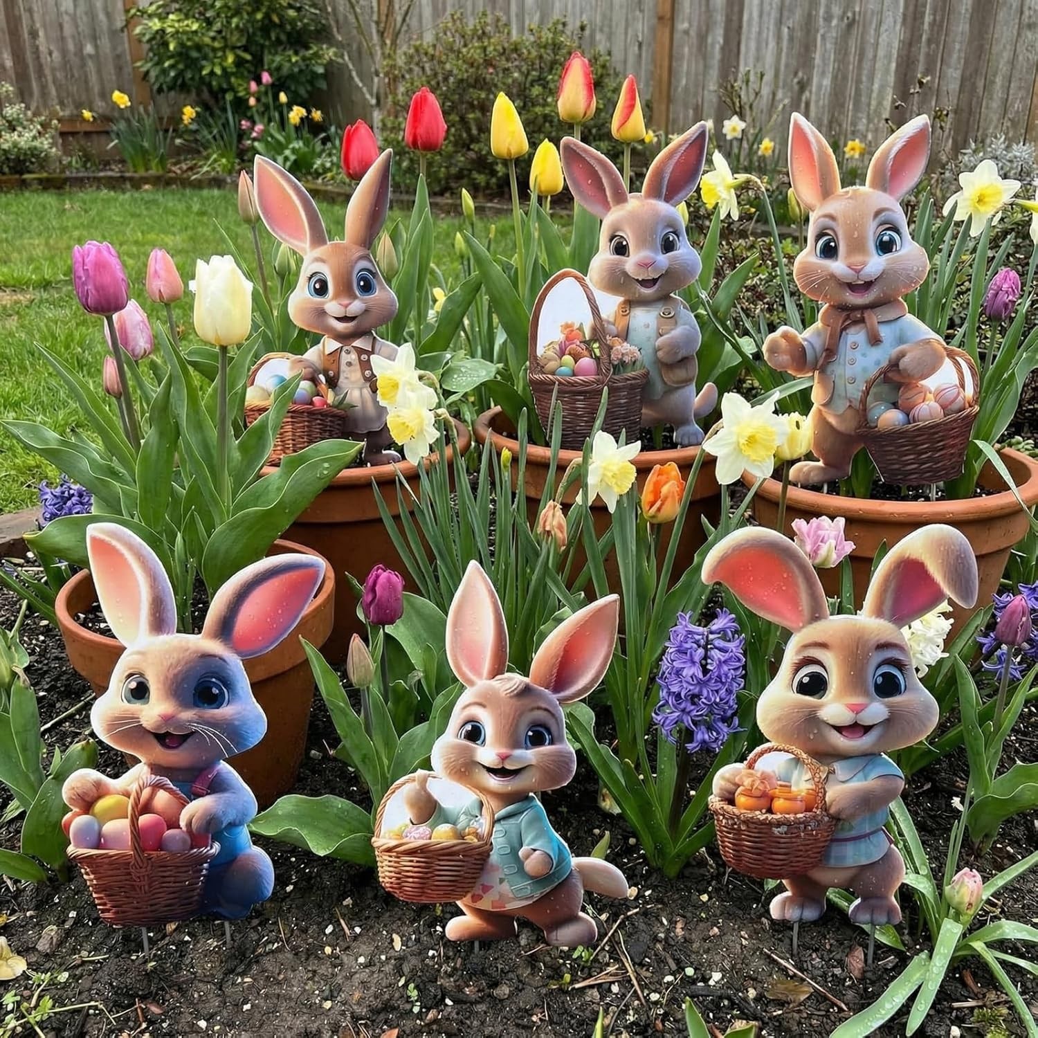Charming 6 PCS Bunny Decorations with Stakes - Ideal for Outdoor Easter Cheer