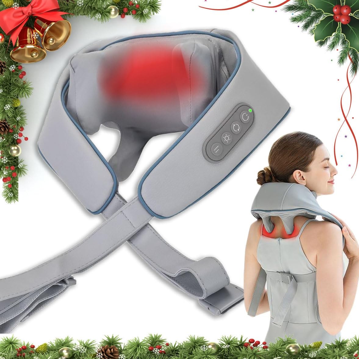 как выглядит Birthday Gifts Deep Kneading Neck and Shoulder Massager with Heat - 5D Cordless фото