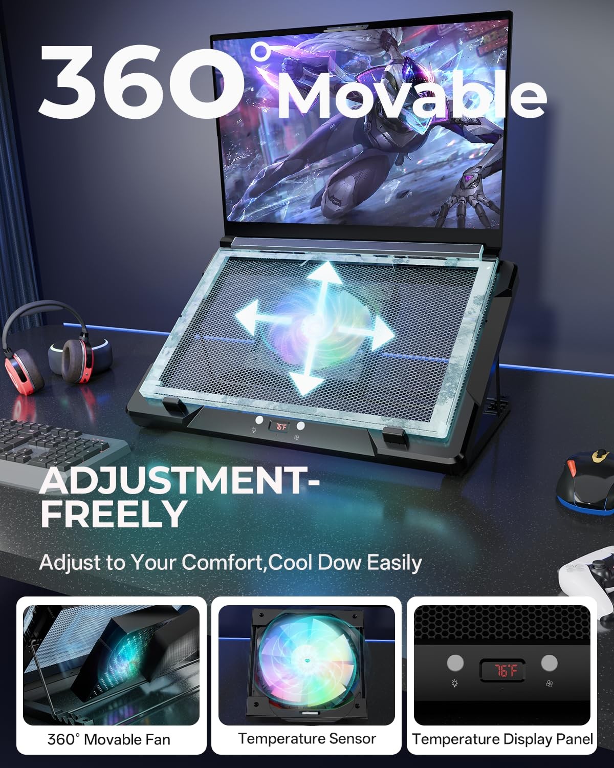 Laptop Cooling Pad, Laptop Cooler Stand with 5.5 Movable Fan Easy to Clean, ...
