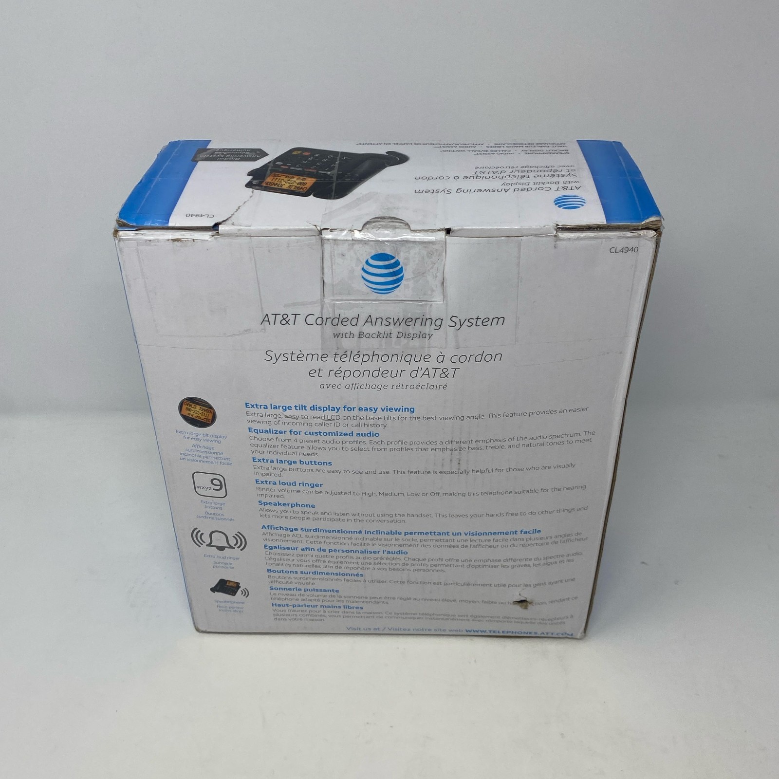 AT T CL4940 White Corded Phone w/ Answering System, Large Backlit Screen