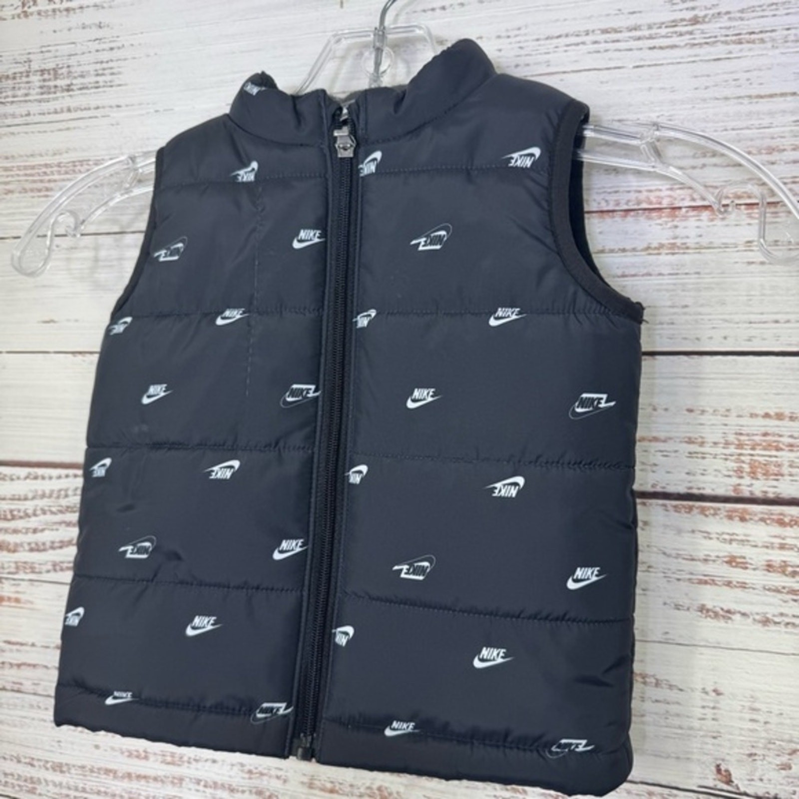 Nike Kids Black White logo size 18 month full zip unisex Puffer Vest