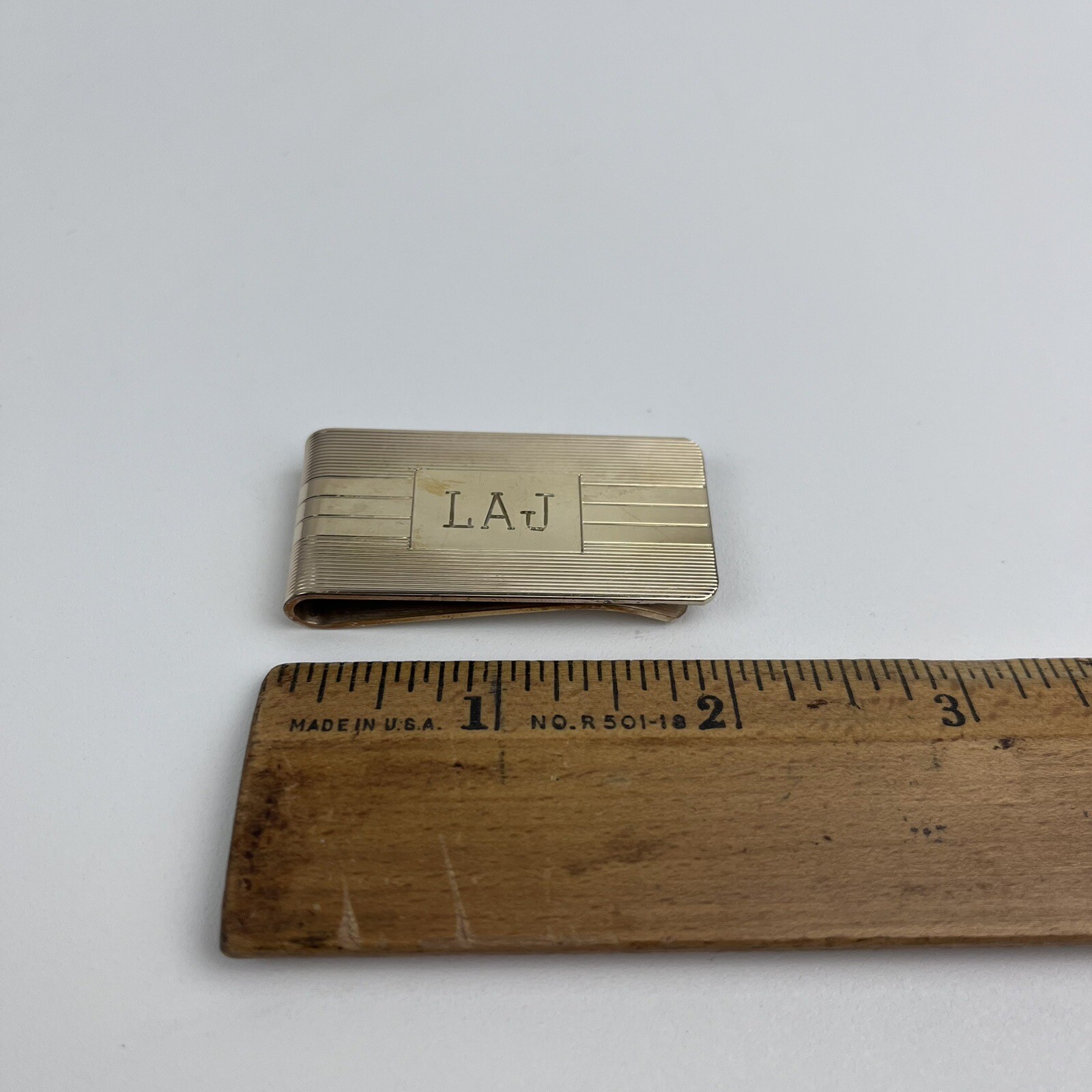 Vintage B.A.Ballou Gold B.A.B. Overlay Engraved LAJ Money Clip 1 x2