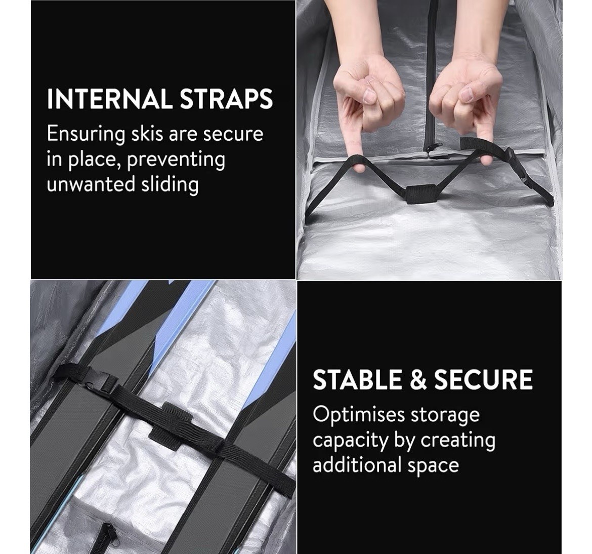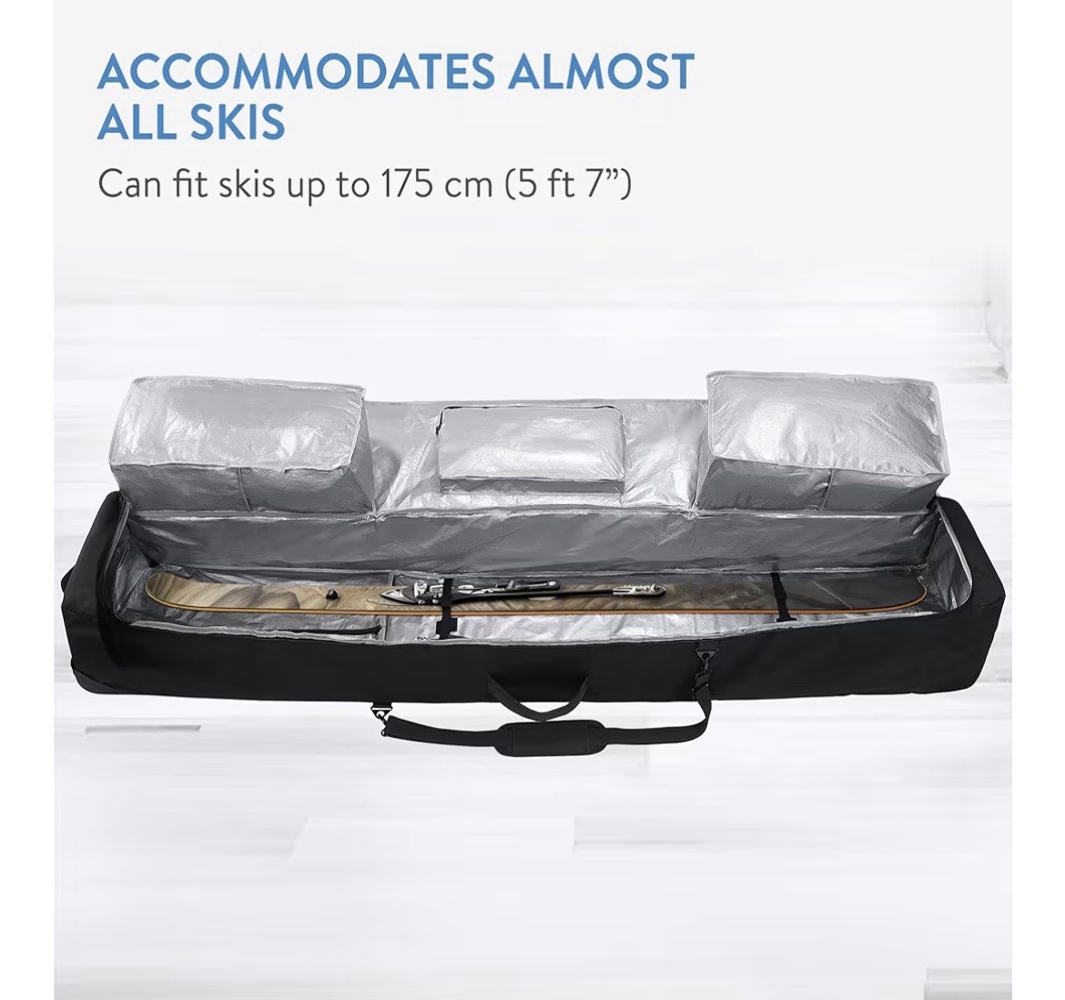 TeamObsidian Double Ski Bag 175cm Padded Water Resistant Wheeled Black