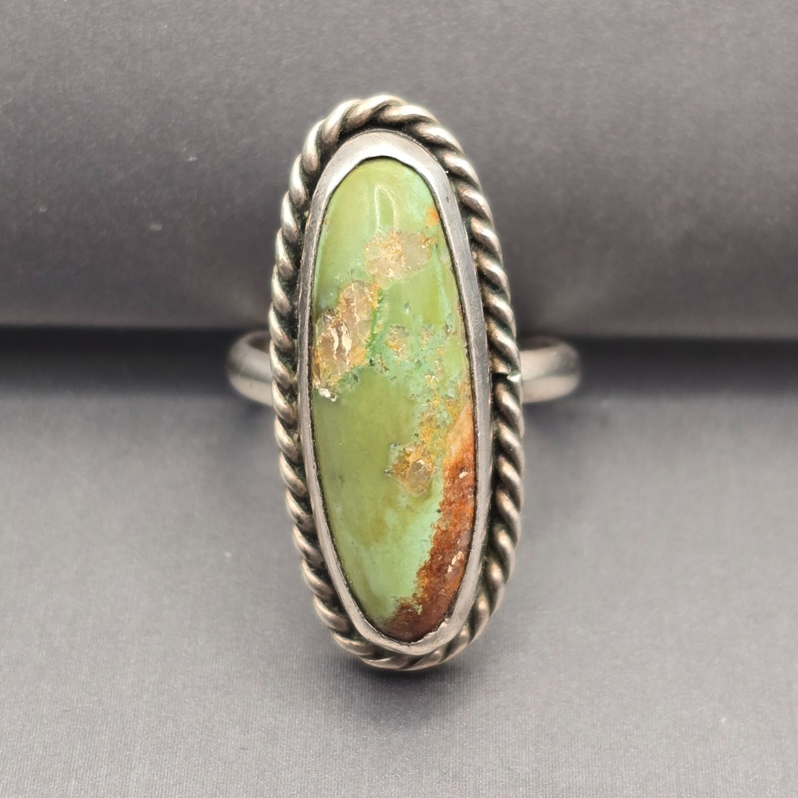 VTG Sterling Silver Southwestern Green Turquoise Ring Size 5.5 Rope Detail