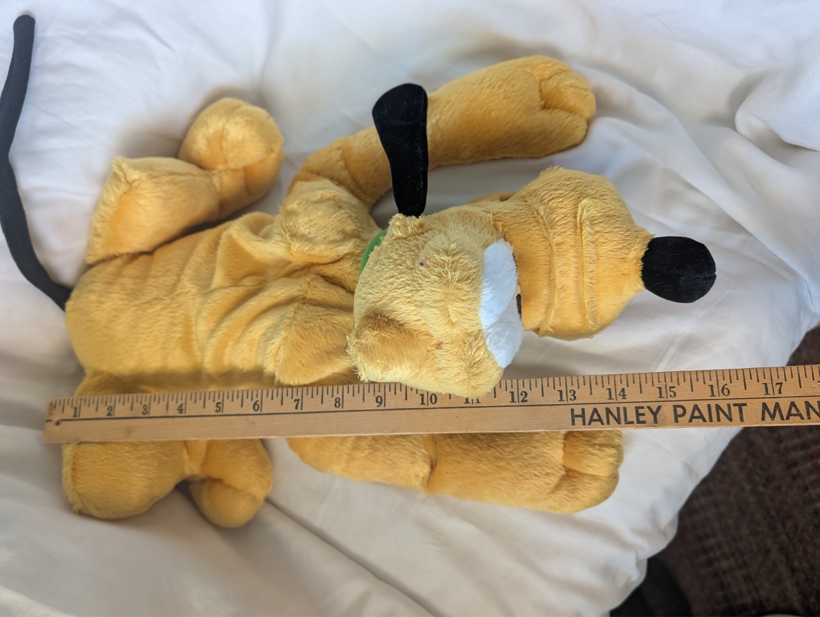 как выглядит PLUTO Walt Disney World Branded Laying Down Plushie 16 inches Weighted. фото