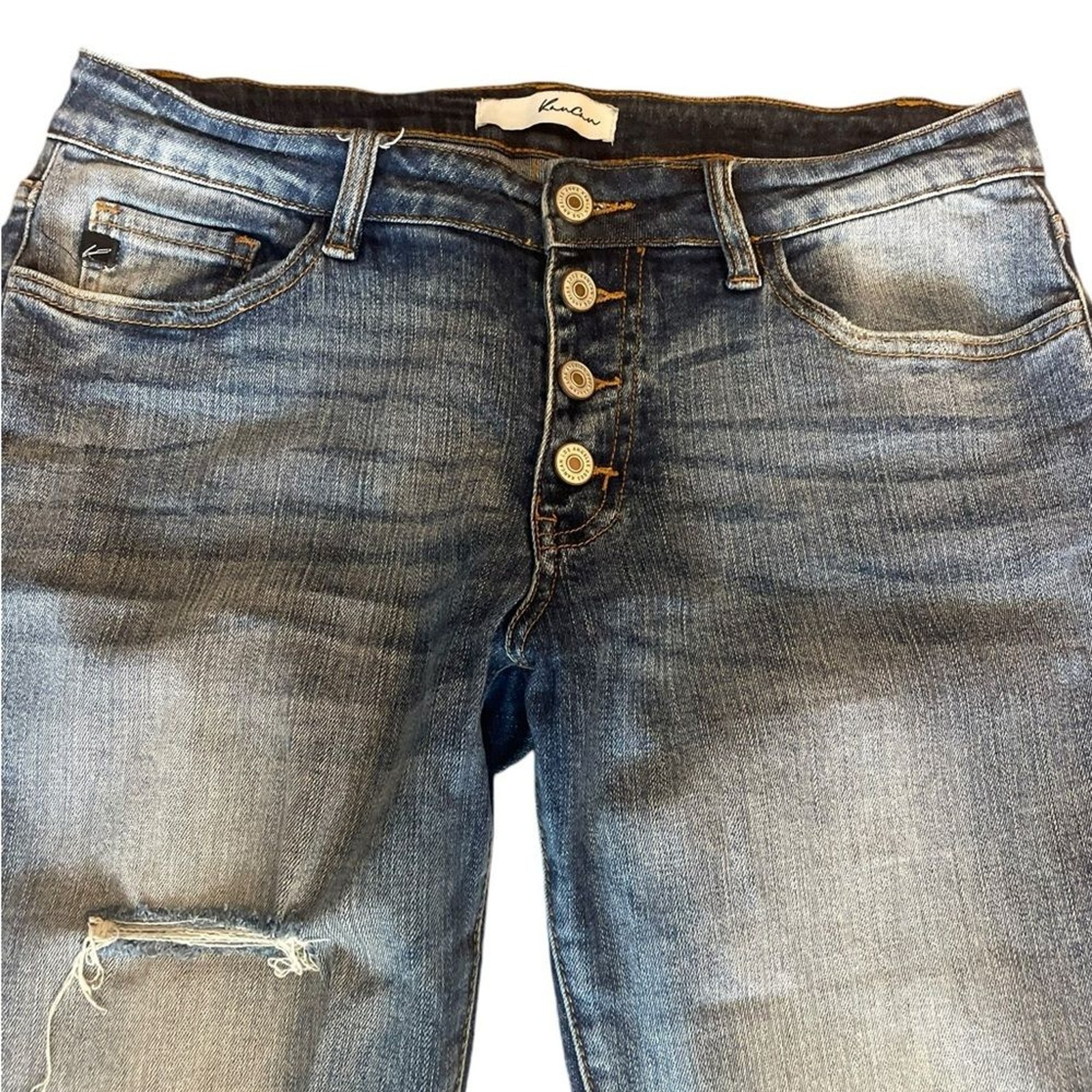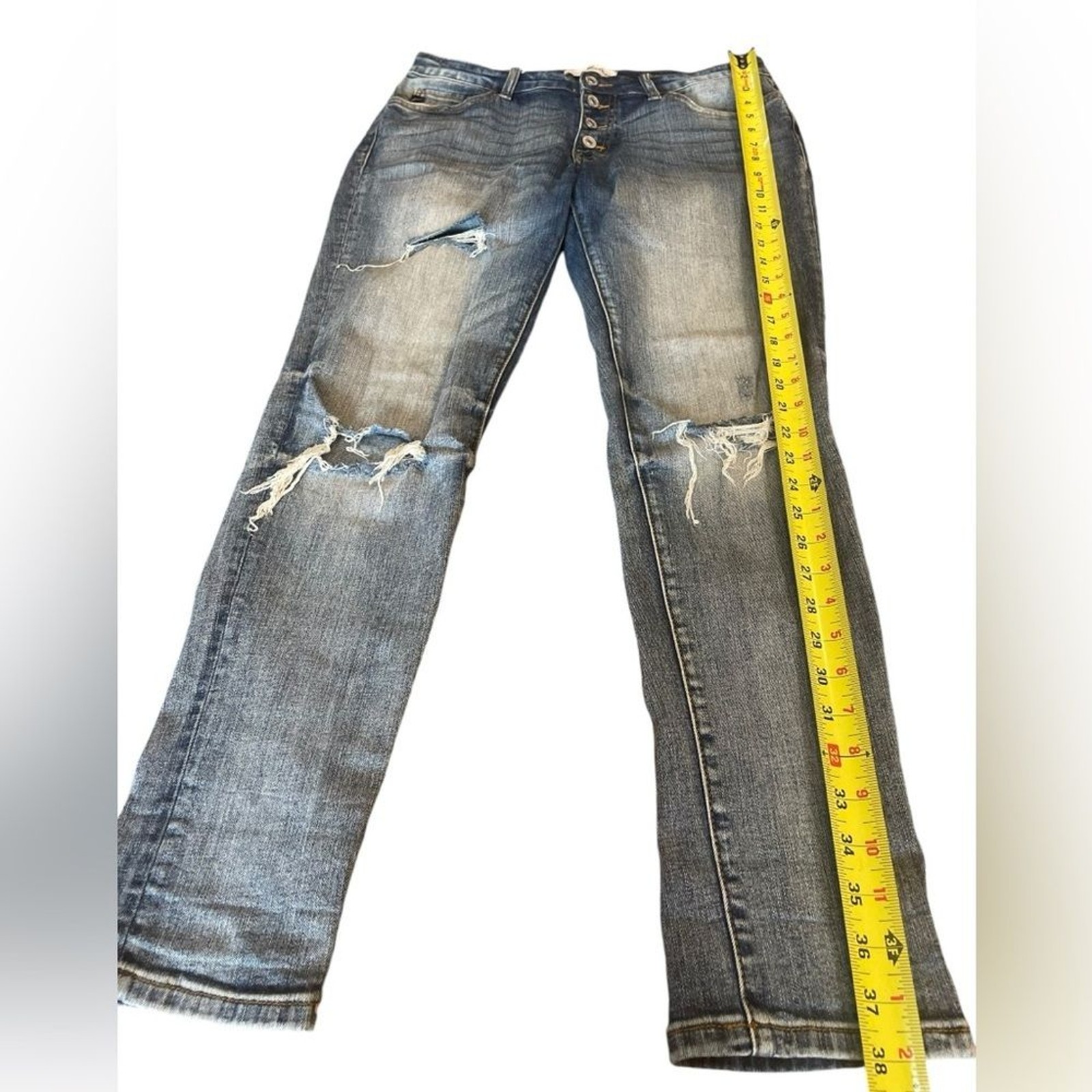как выглядит KanCan Mid Rise Boyfriend Fit Jeans Distressed Button Fly Womens 7 or 27 фото