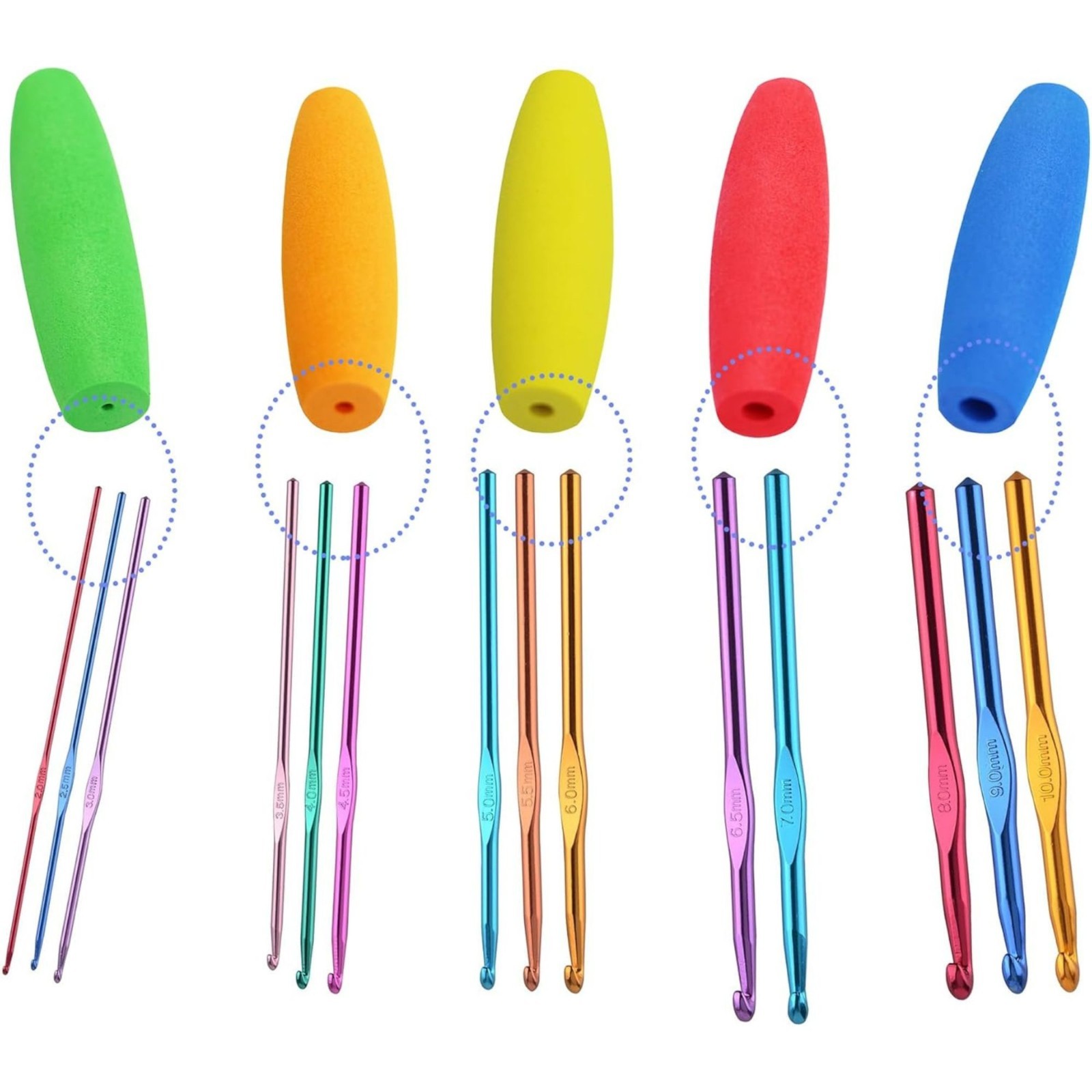 как выглядит 5PCS Crochet Hook Grips Set Ergonomic Crochet Hook Handle Multi-Size Ergonomic C фото