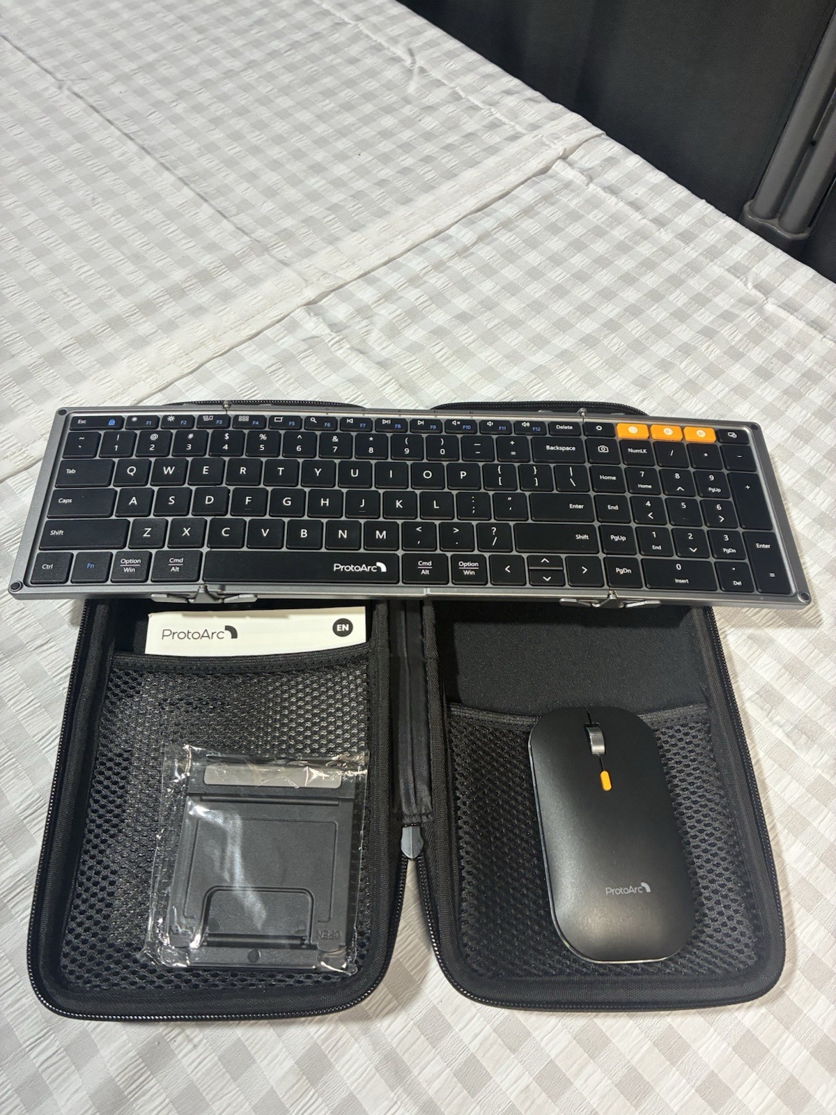 как выглядит ProtoArc XKM01 Foldable Full-Size Wireless Keyboard Mouse Combo, Silver, Open фото