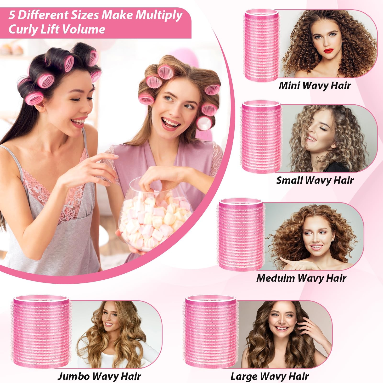 как выглядит 65 PCS Hair Curler Rollers with 5 Sizes Grip Hair Rollers for Long Medium Sho... фото