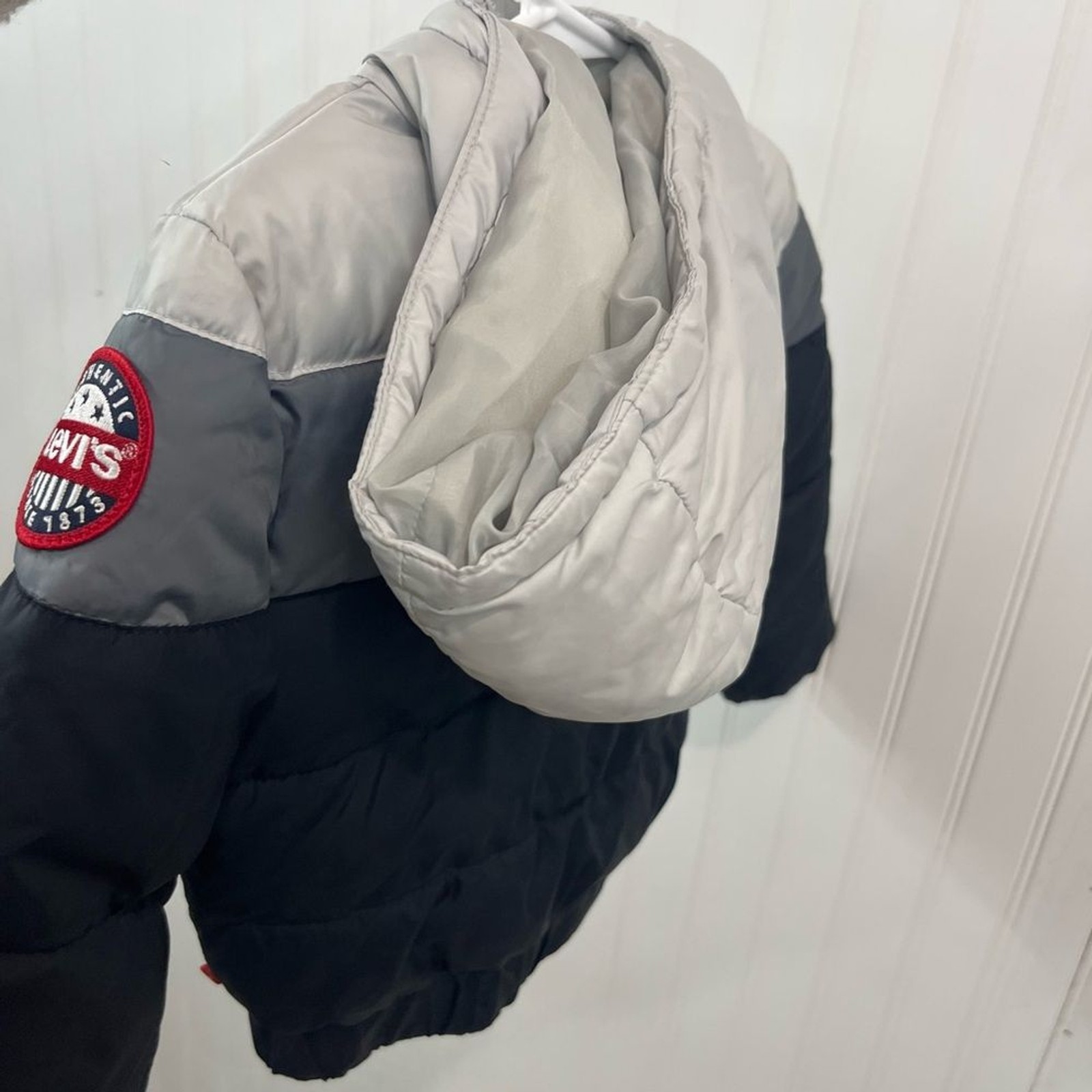 как выглядит Levis kids colorblock Black Water-Resistant zip up puffer Jacket фото