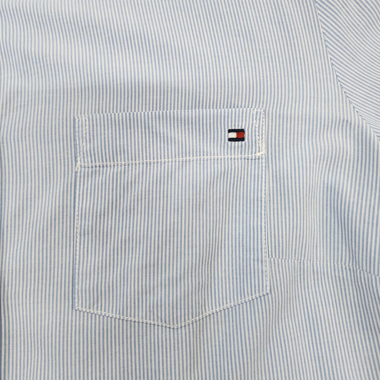 Tommy Hilfiger Shirt Mens Large Blue Stripe Long Sleeve Button Front Casual