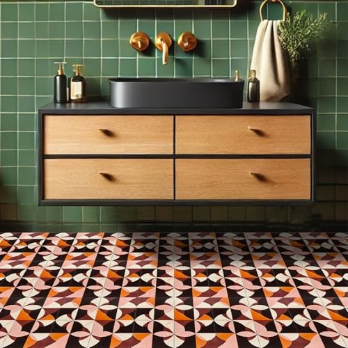 10PCS Floor Tiles Peel and Stick Removable Self 12x12 Inch Retro Geometric Art