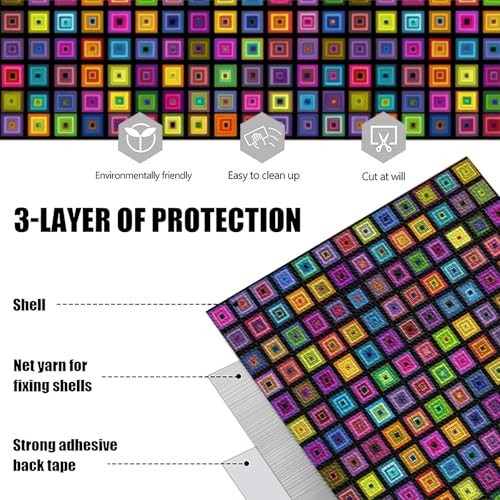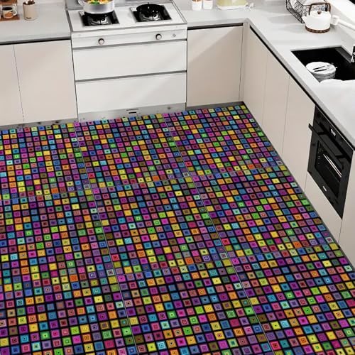 10PCS Peel and Stick Floor Tiles Self 12x12 Inch Rainbow Geometric Square