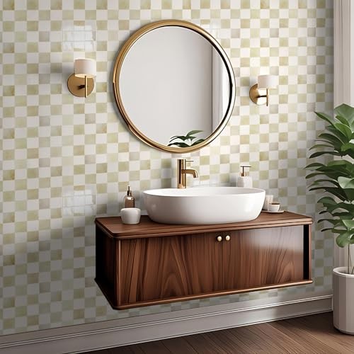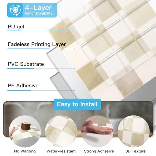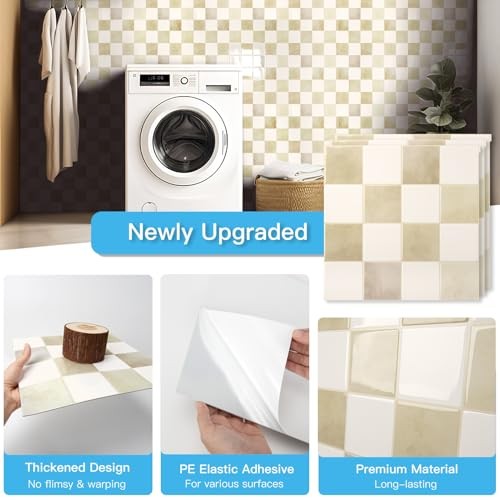 10-Pack Heavy-Duty Peel and Stick Backsplash, 12 x 12 Inch Beige and White