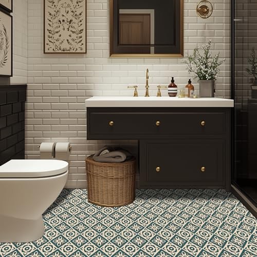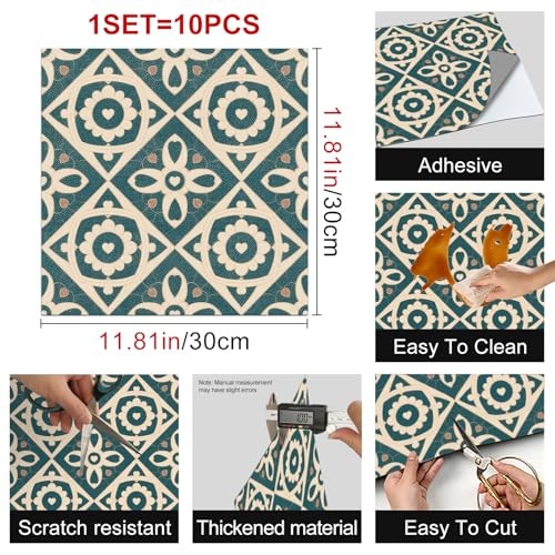 10PCS Pattern PVC Floor Tiles Peel and Stick 12x12 Inch Vintage Heart Floral