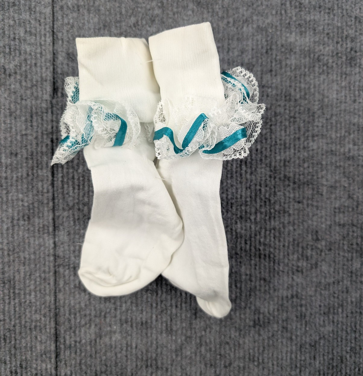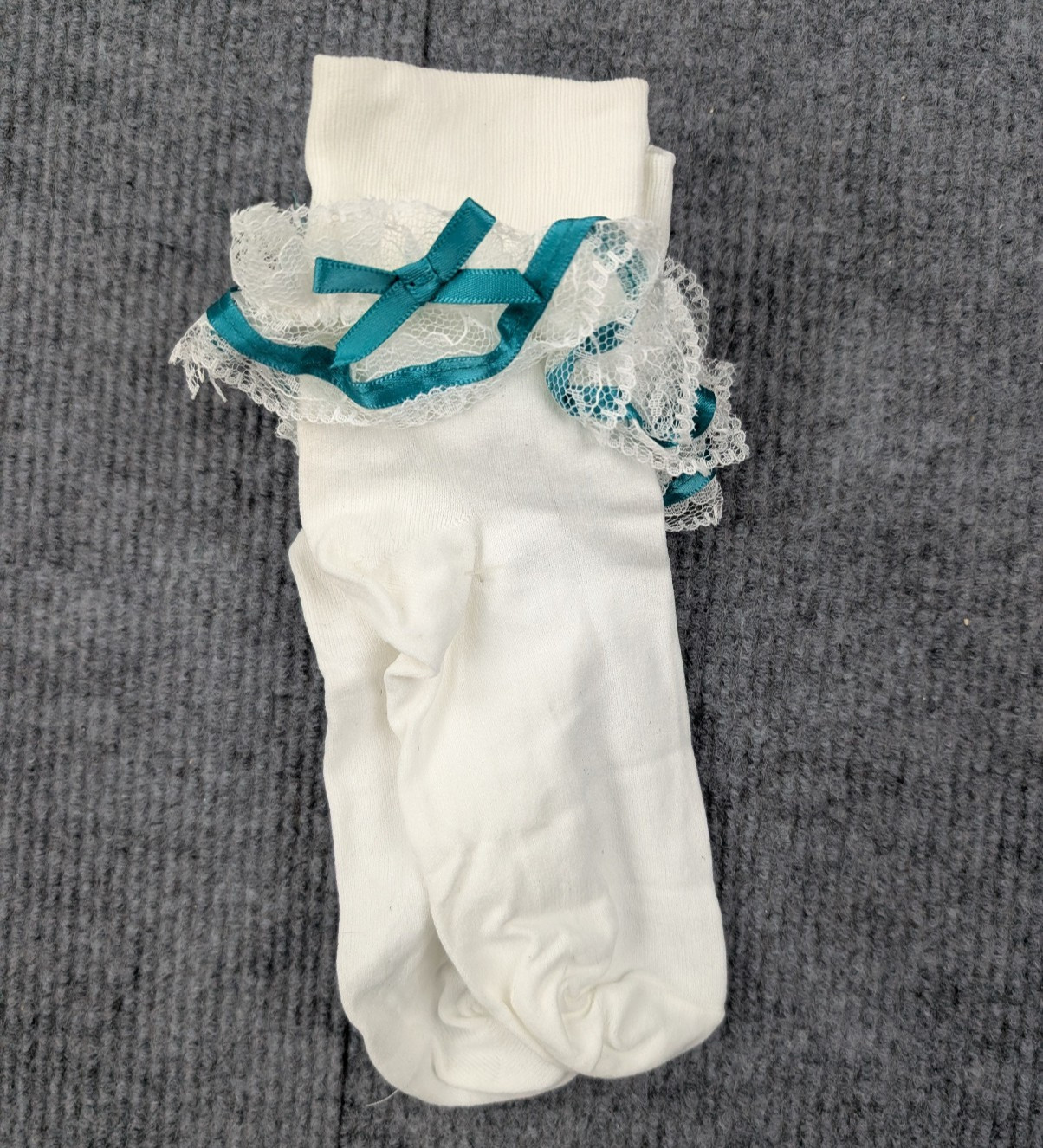 как выглядит Vintage Lace Ruffle Socks Womens 9-11 Nylon Coquette White Teal Frilly Girly 90s фото