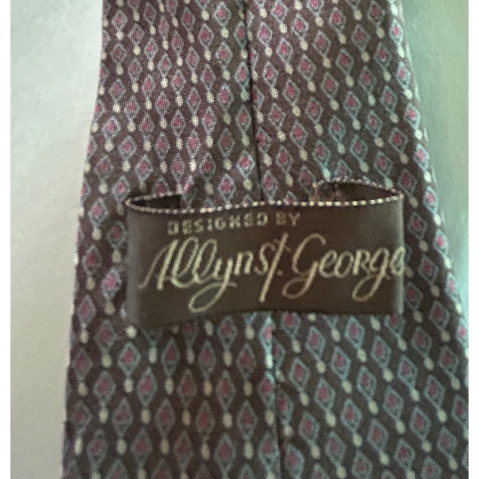 Allyn St George Mens Silk Tie Brown Geometric Diamond Pattern Vintage Necktie