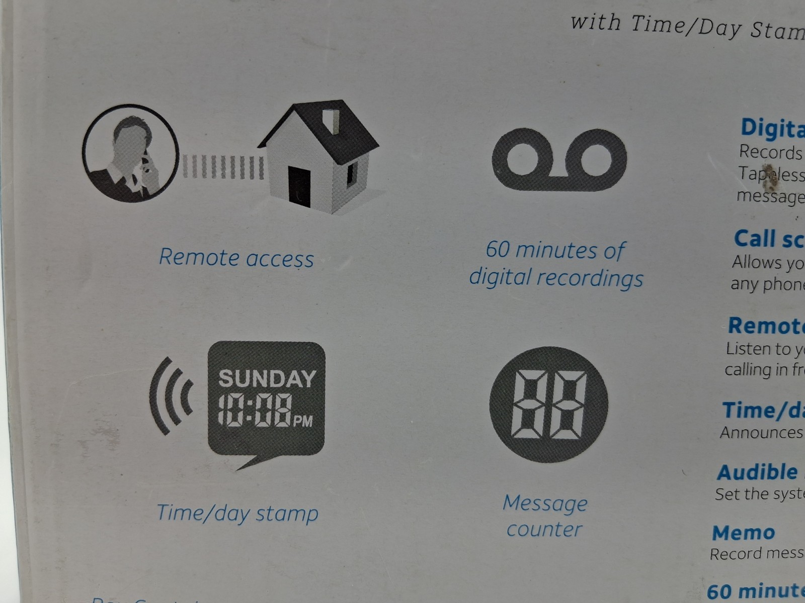 Особенности: Day/Time Stamp-Digital, Wireless, See Description, Audible Message Alert, LCD Screen, Call Screening, Digital Operation, Digital, Speakerphone, Time/Day Stamp, Clock, Remote Access, Message Center, Built-In, Caller Idaho Capable, Vintage, Voice Memo Recording, 60min. Digital Recording Time, Date/Time Stamp, Memory Guard Memory for Power Failure, Answering System, Screen Calls, Call Screen/Intercept, Variable Speed Playback, Message Guard, 60min. Recording, LCD Display, Call Waiting, Att 1740 Digital Answering System, English/Spanish Voice Prompts, Radio, English/Spanish Prompts, Message Guard Memory for Power Failure, Remote Message Retrieval, Message Counter, Answering Machine, Call Intercept, Att 1740 Digital Answering System *Digital Answering System * Dig, Caller Idaho, Volume Control, Conversation Recording, 60min. Digital Recording, 60min. Digital Record Time, 60min. Recording Time, Memo, 60min. of Digital Recording Time