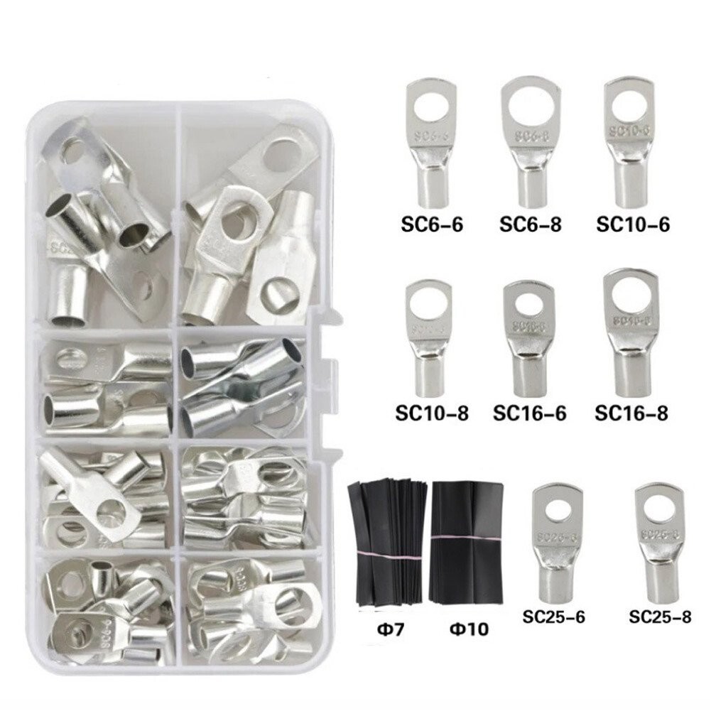 как выглядит 280PCS Copper Lugs Ring Terminals Bare Battery Welding Crimp Wire Connectors Kit фото