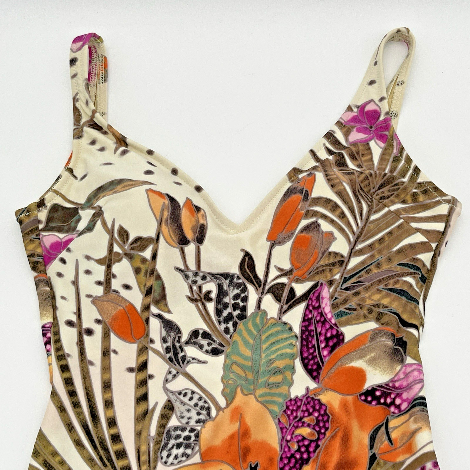 Gottex Tropical Floral One Piece Swimsuit Sz 6 US Retro Modest Vacation Swimwear