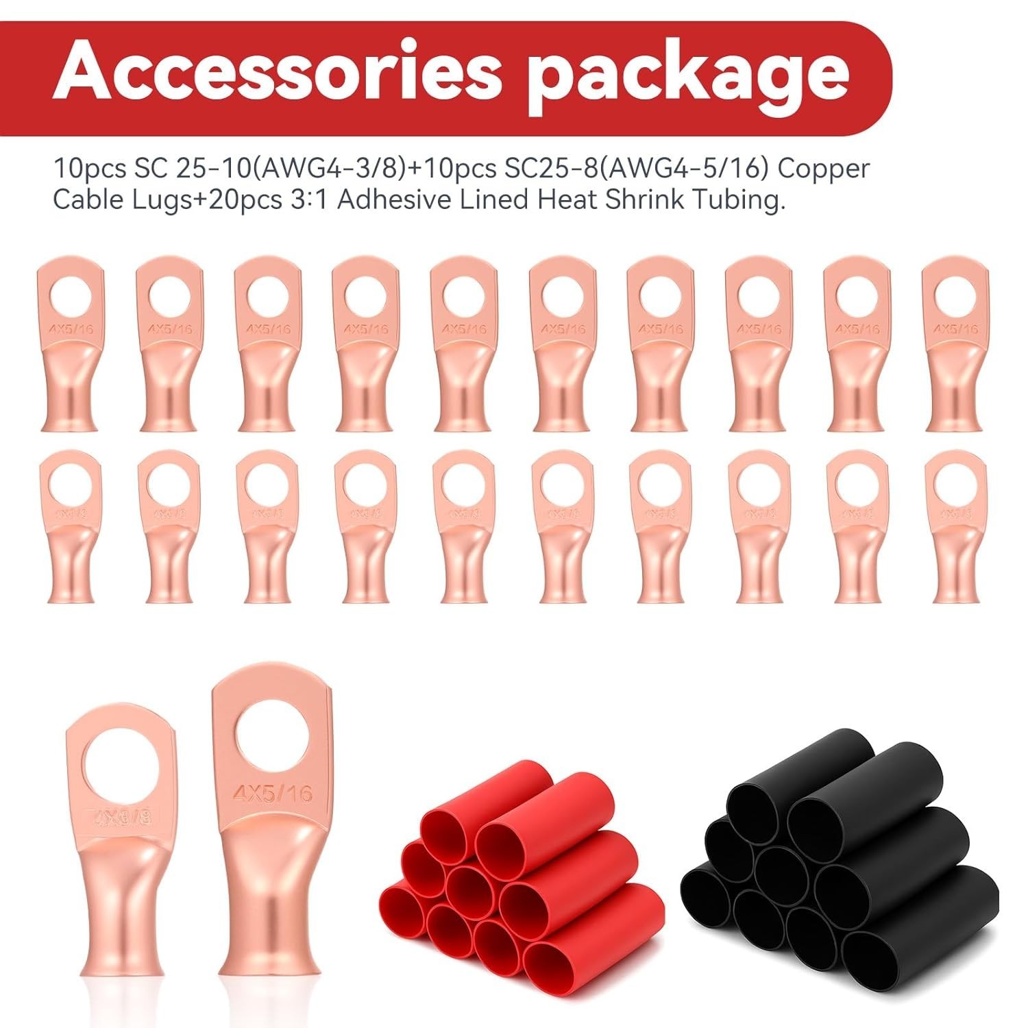 как выглядит 4 Gauge CCA Automotive Wiring Kit - 25FT with Lugs Heat Shrink фото