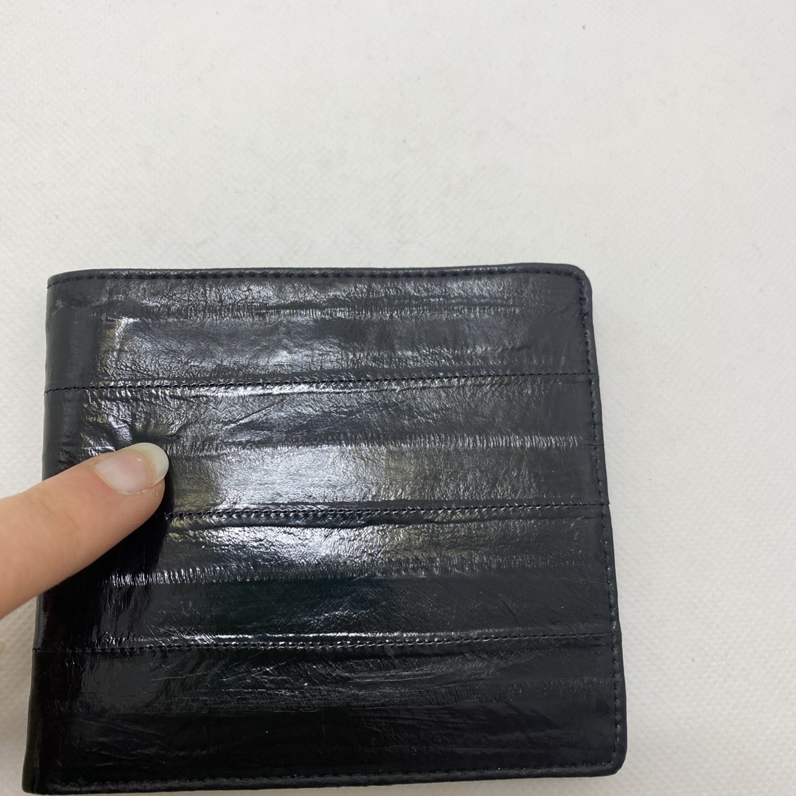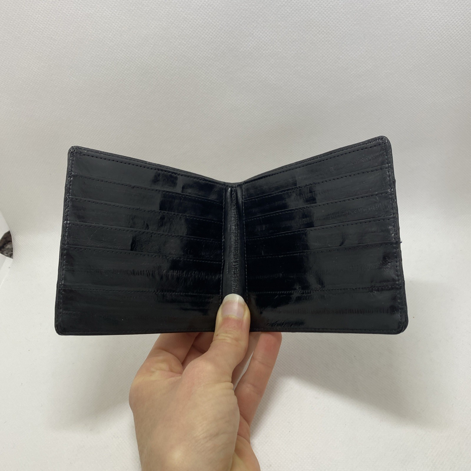 как выглядит Vintage Genuine Eel Skin Leather Billfold Wallet Men