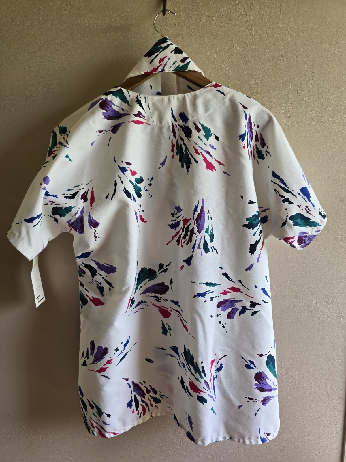 NWT Women's Top Line White Multicolor Floral Short Sleeve Scrub Top Size M