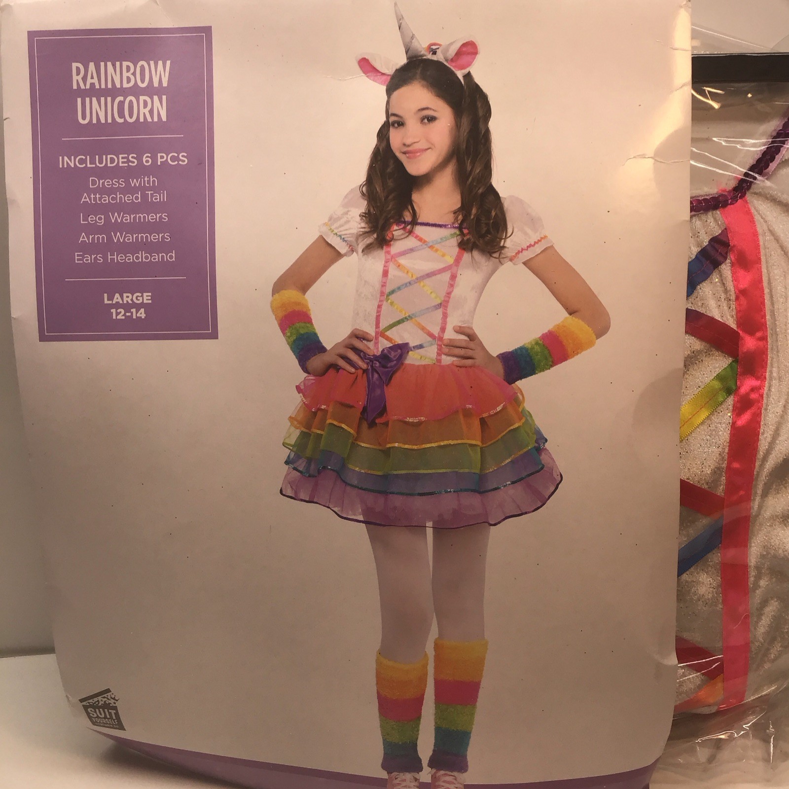 Rainbow Unicorn Costume Girls L 12-14 6pc