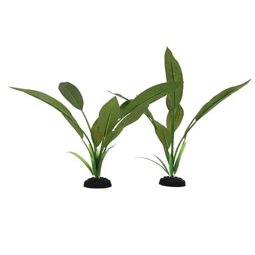 как выглядит 2-Pack 12" Artificial Silk Aquarium Plants for Small Tanks - Green Fish Hides фото