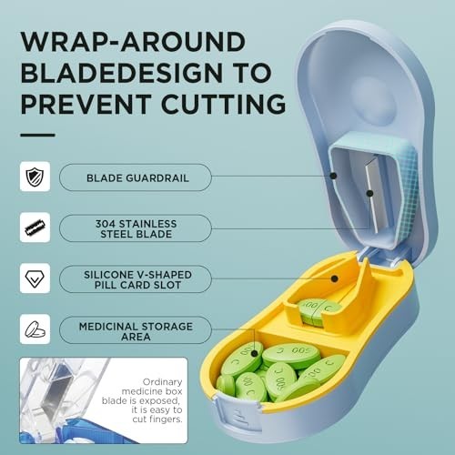 Pill Cutter Splitter for Small Pills - Easy Open, Detachable Silicone Pad, Saf