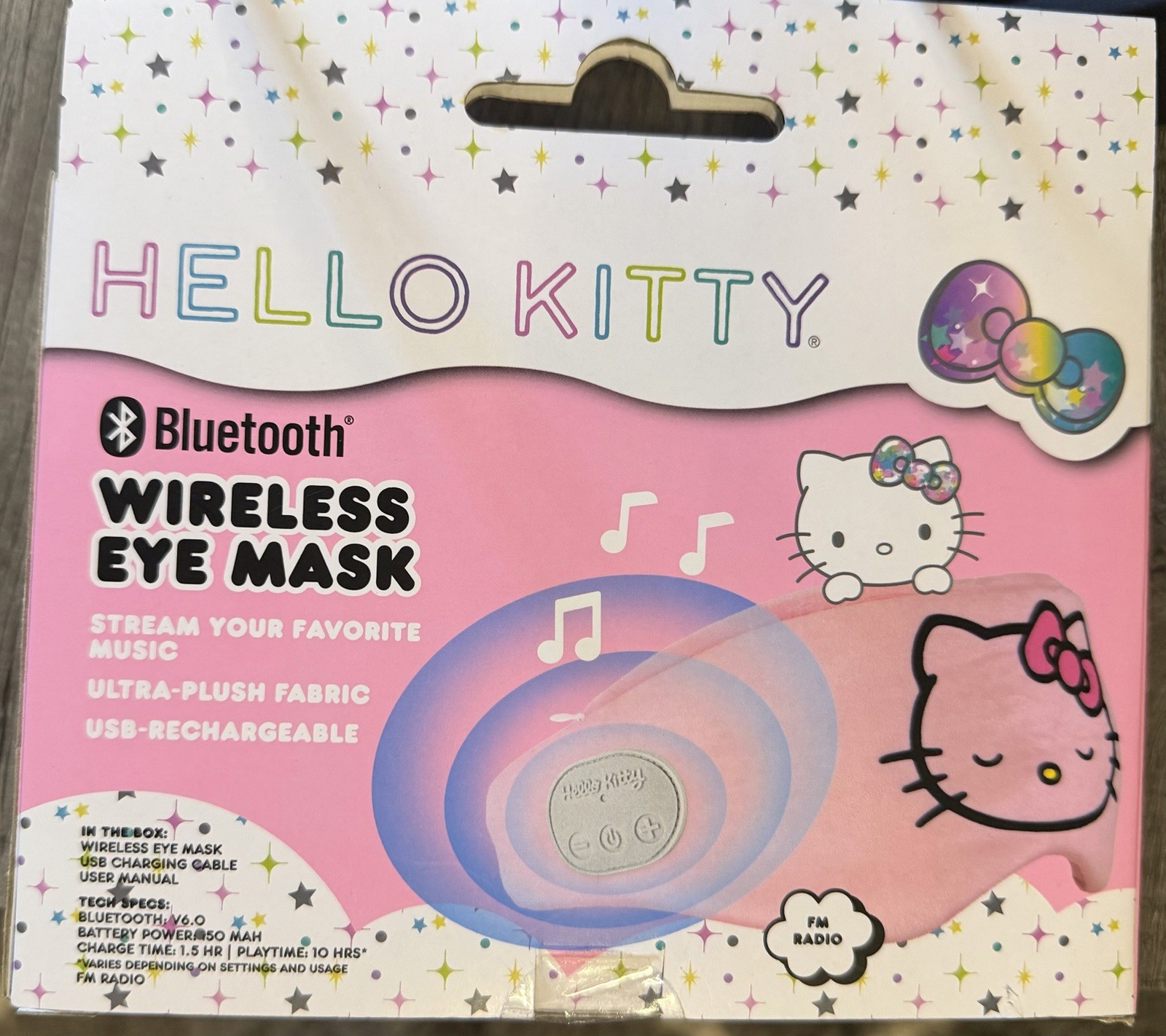 HELLO KITTY WIRELESS BLUETOOTH EYE MASK SLEEP MASK PLAYS STREAMING USB Charger