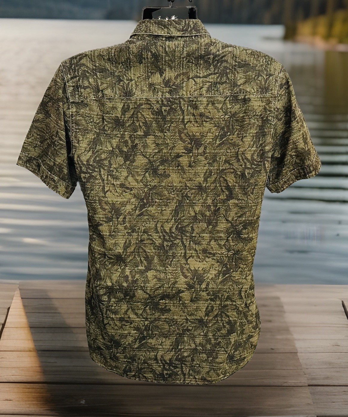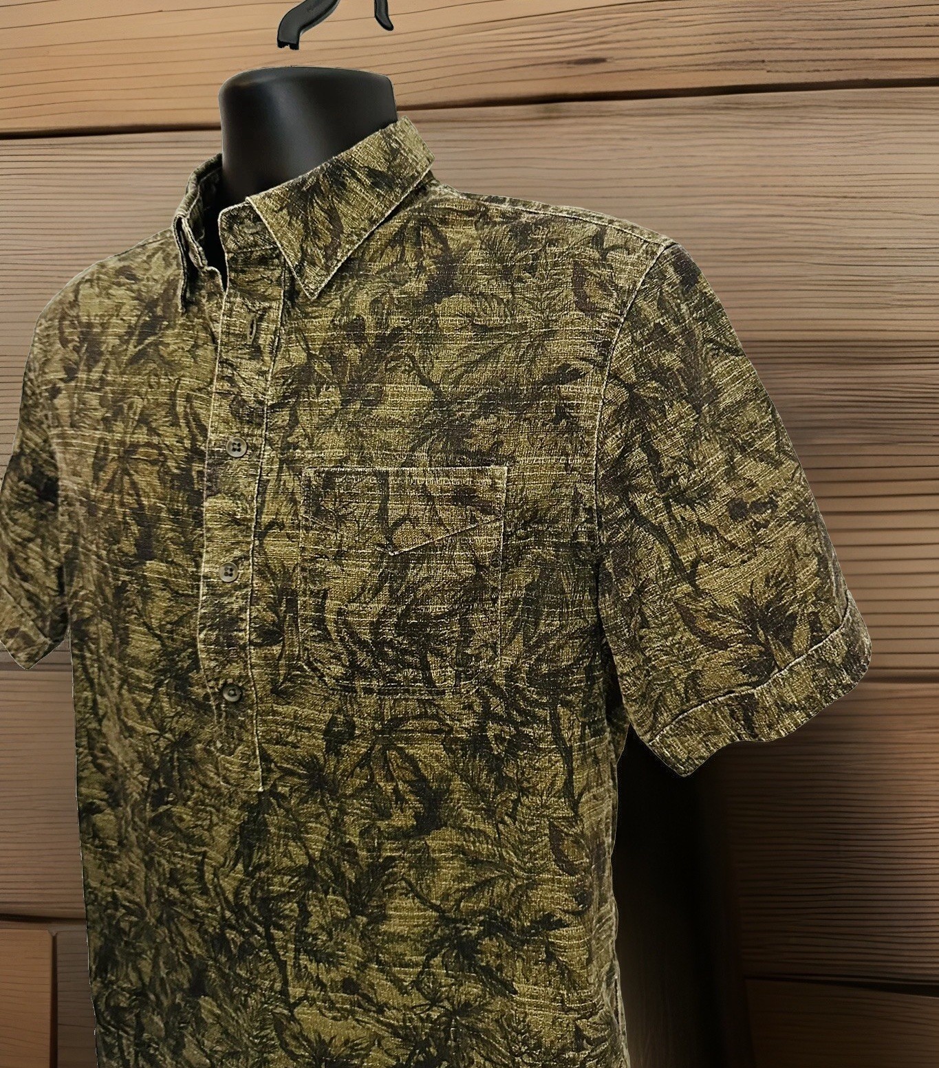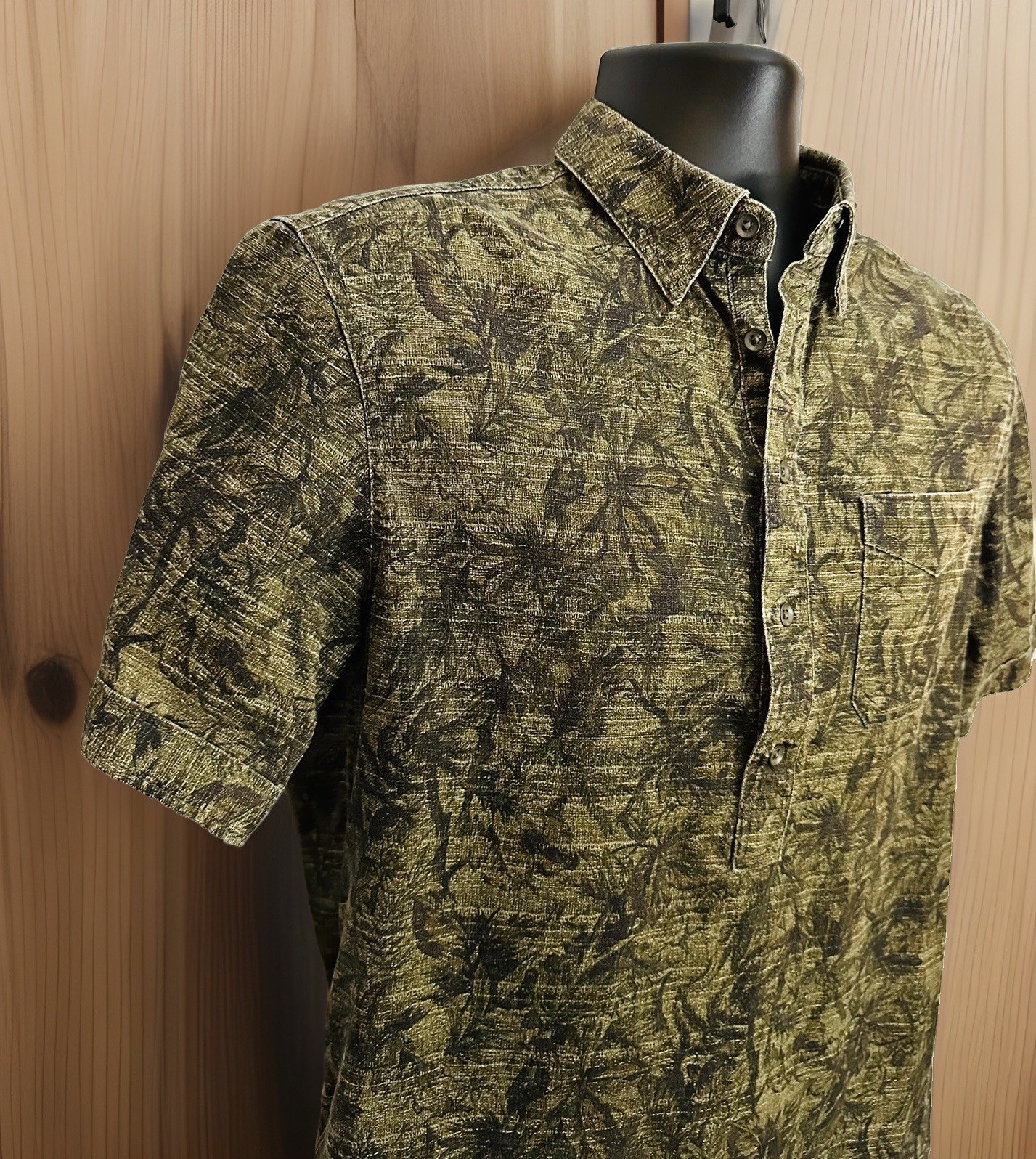 199 ALLSAINTS Japan Made Shirt Mens S MAKANA Half-Button Front Cotton Olive EUC
