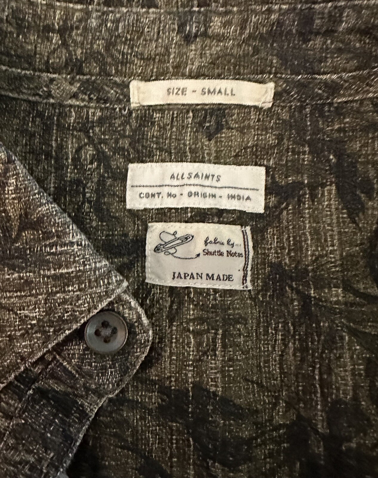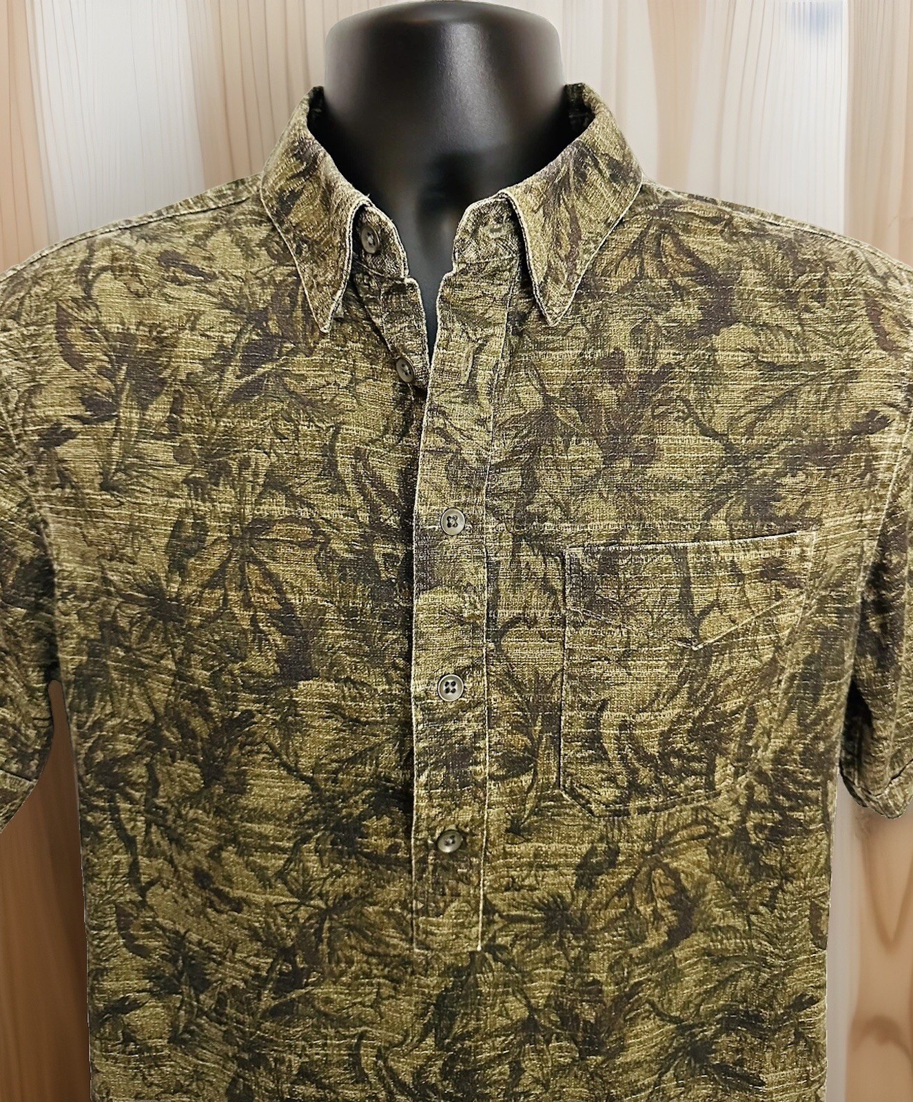 как выглядит 199 ALLSAINTS Japan Made Shirt Mens S MAKANA Half-Button Front Cotton Olive EUC фото