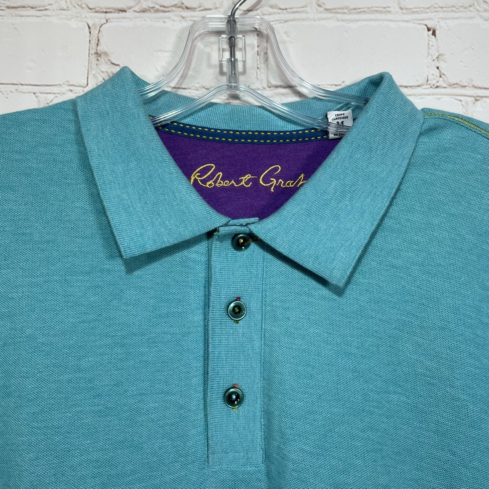 как выглядит Robert Graham Polo Shirt Mens Size Medium Turquoise Classic Fit Preppy Golf фото