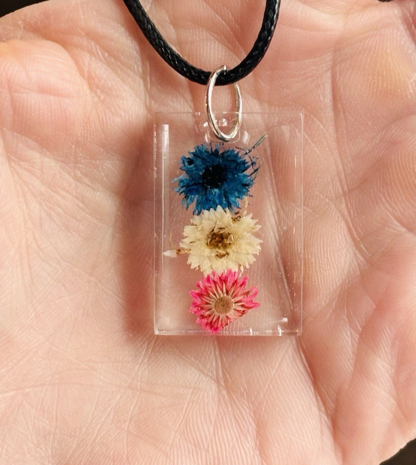 Handmade Pressed Flower Resin Necklace Real Dried Floral Pendant Resin