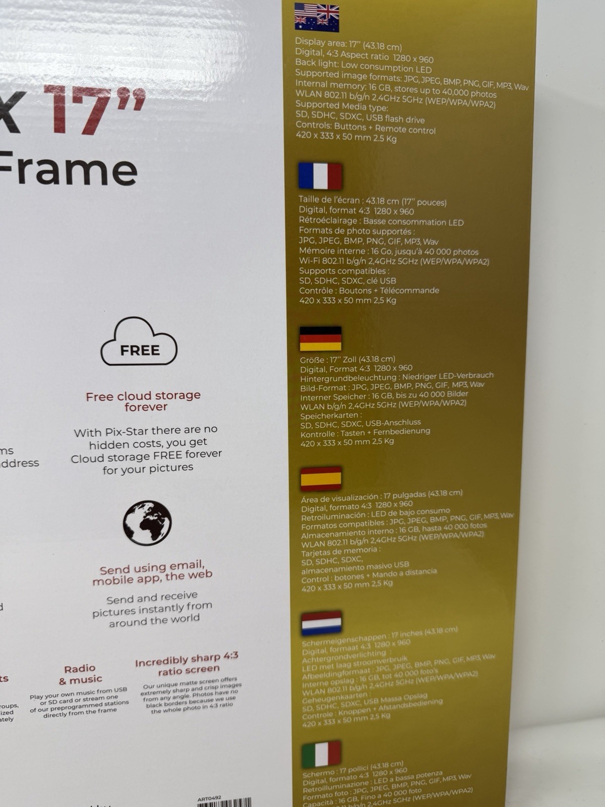 Pix-Star 17 inch Extra Large Digital Frame, Digital Calendar, Music, Weather Etc
